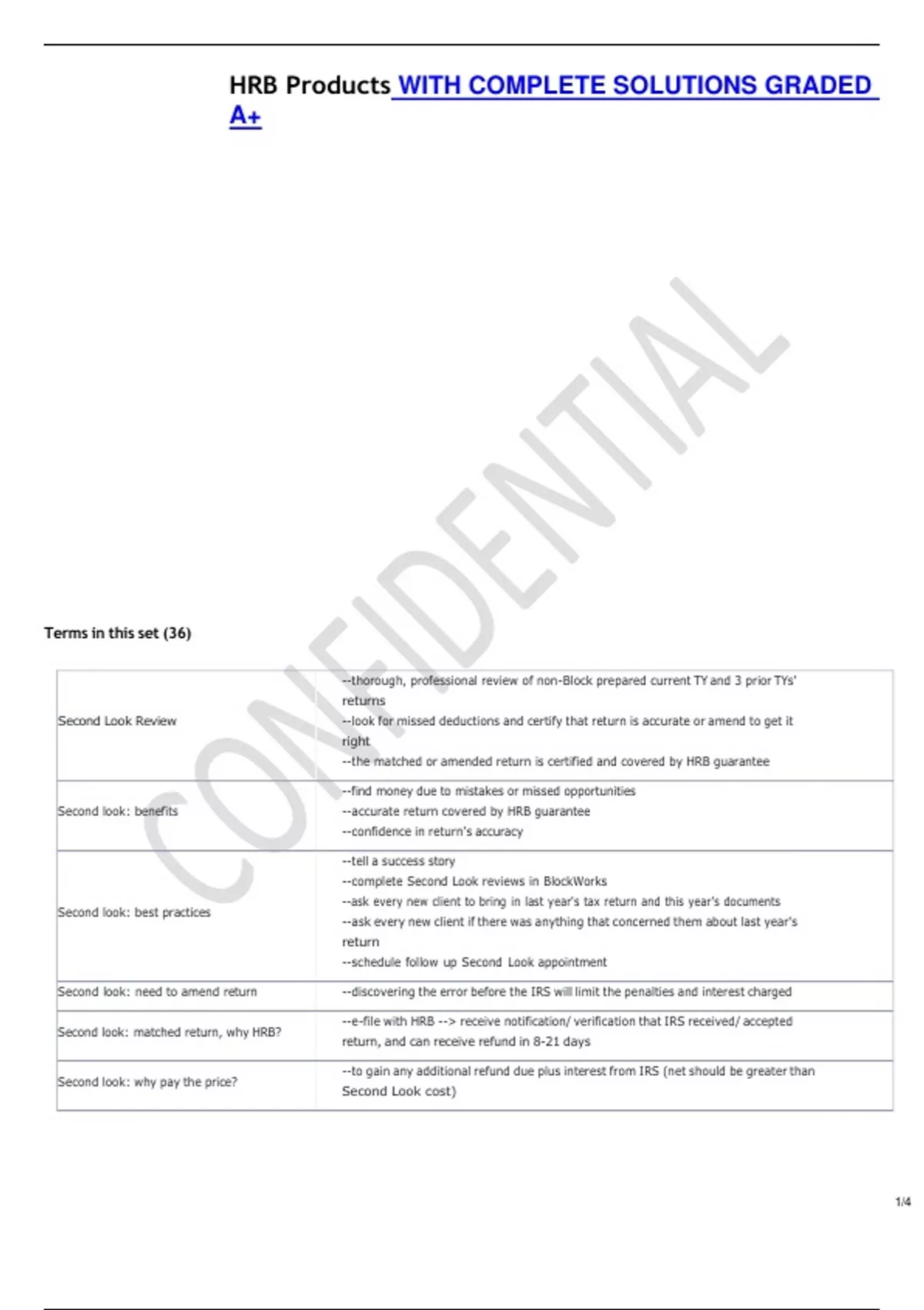 HRB Products WITH COMPLETE SOLUTIONS GRADED