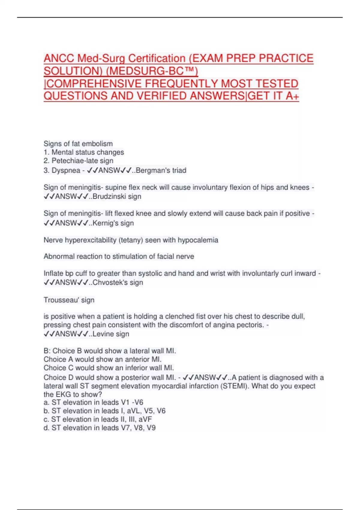 Choice D would show a posterior wall MI. - ✔✔ANSW✔✔..A patient is diagnosed with a
