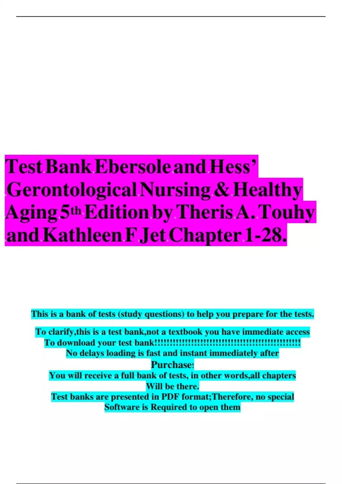Test Bank For Ebersole and Hess’ Gerontological Nursing and Healthy Aging 6th Edition by Theris A. Touhy, and Kathleen F Jet All Chapters 1-28 LATEST