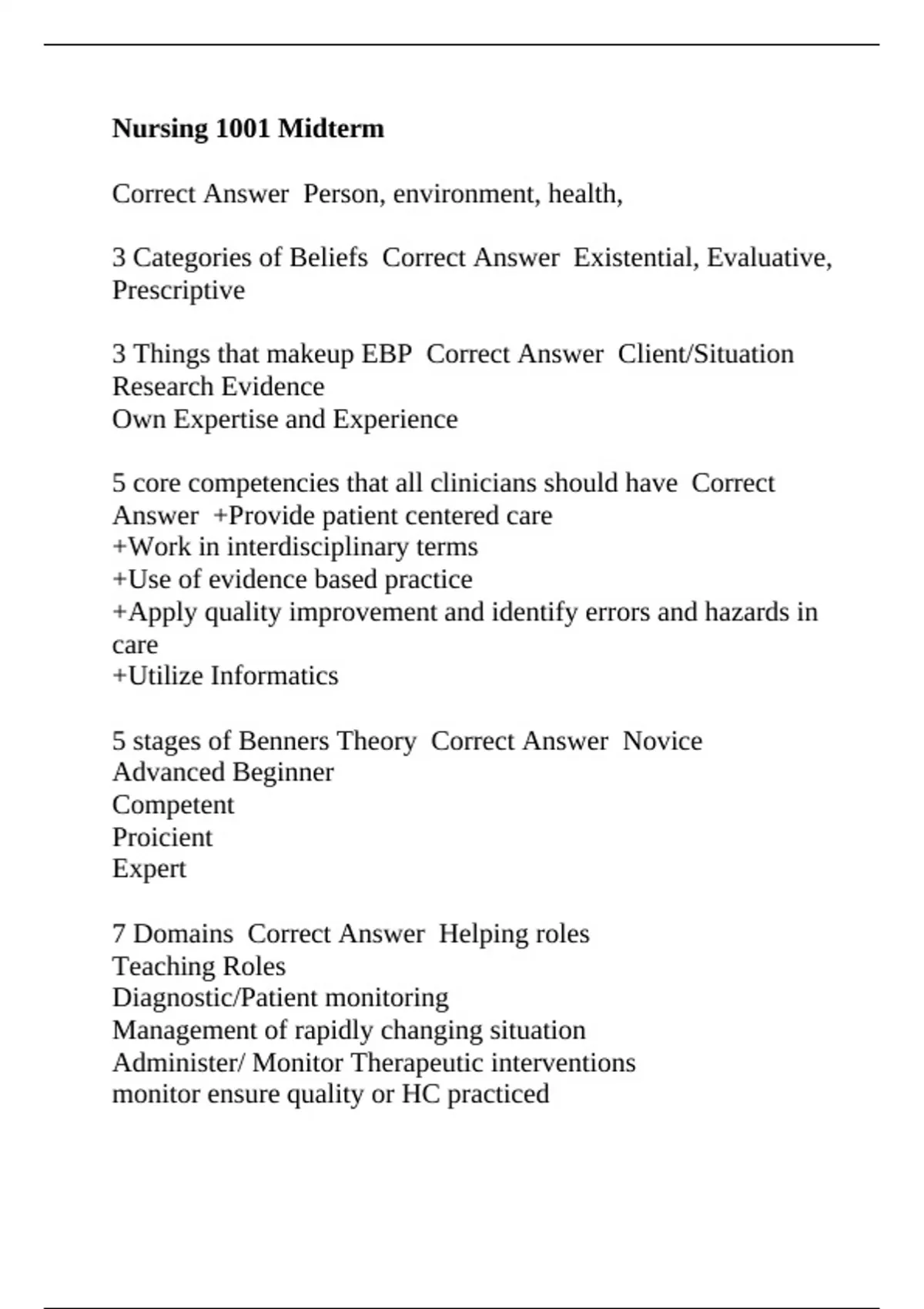 Benner's Theory Correct Answer 5 staged an 7 domains/roles