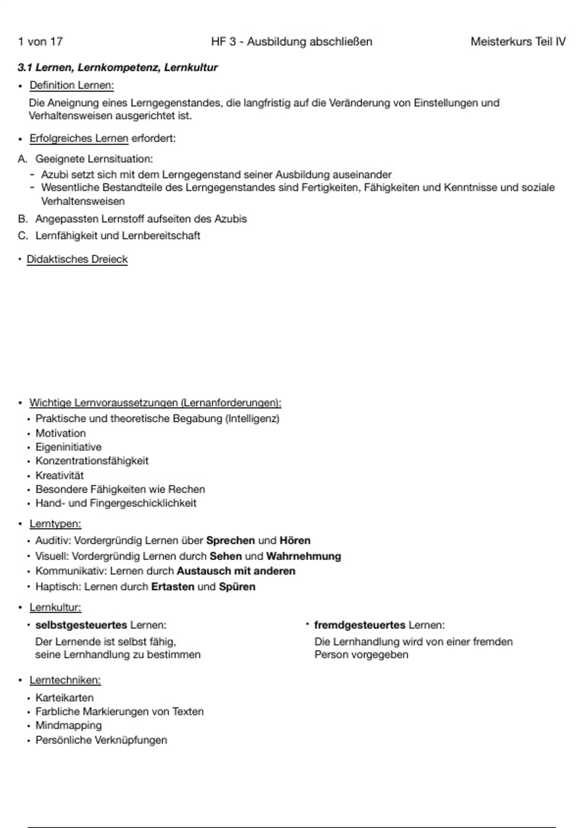 , 3 von 17 HF 3 - Ausbildung abschließen Meisterkurs Teil IV