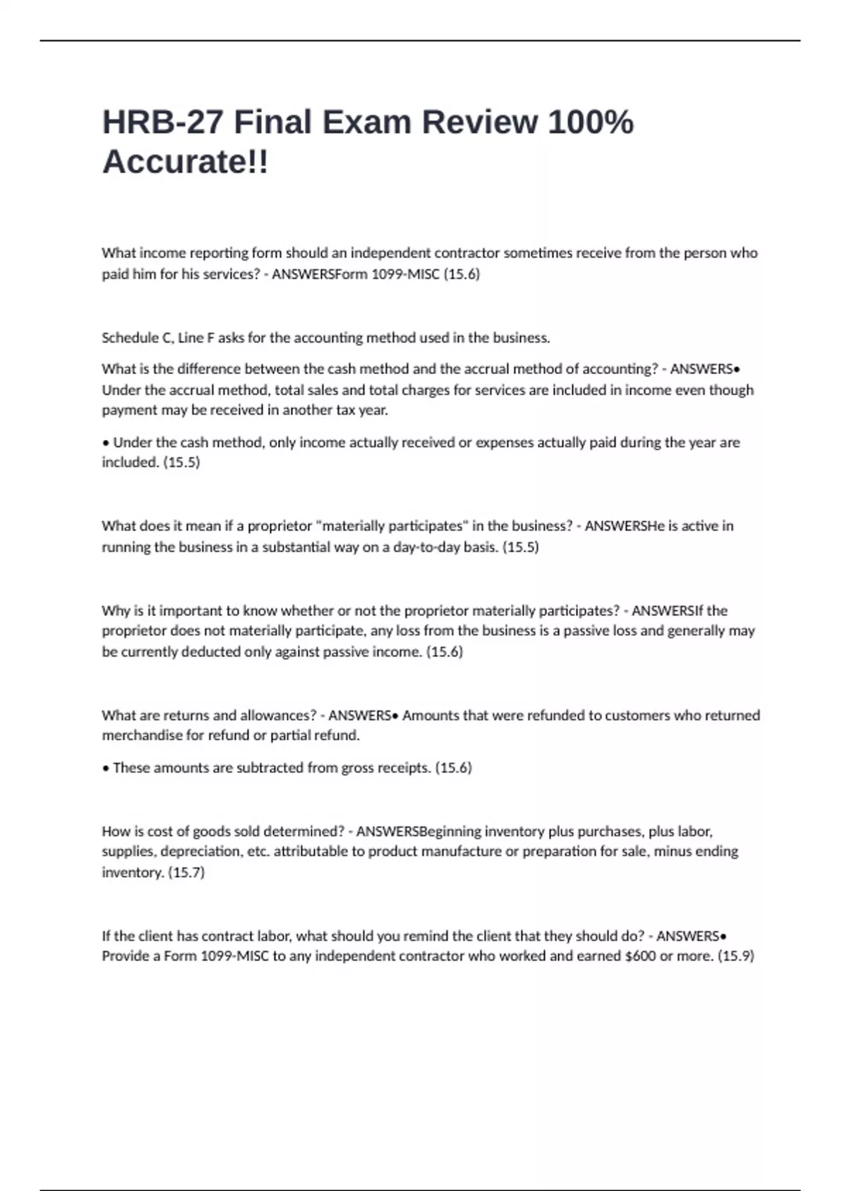 Provide a Form 1099-MISC to any independent contractor who worked and earned $600 or more. (15.9)