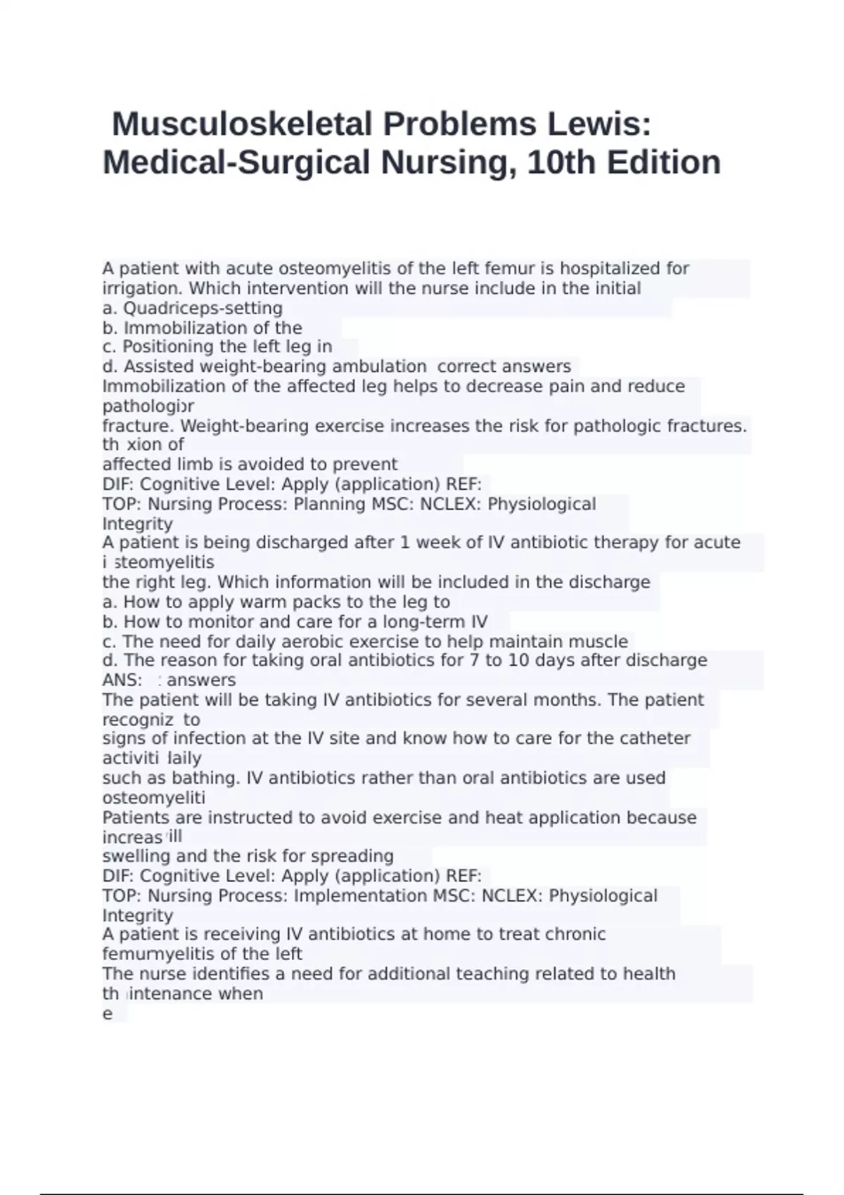 TOP: Nursing Process: Evaluation MSC: NCLEX: Physiological