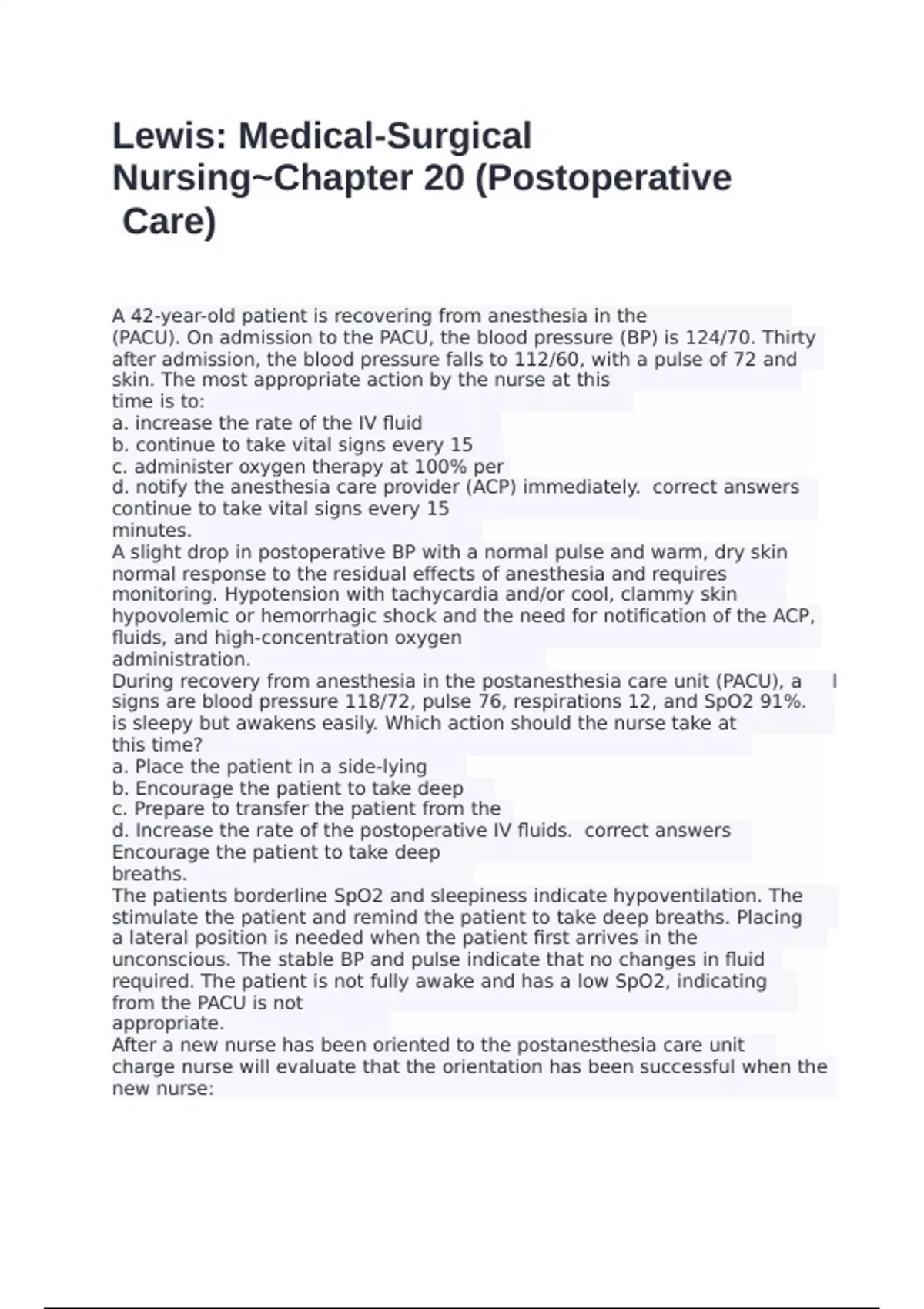 d. Increase the rate of the postoperative IV fluids. correct answers