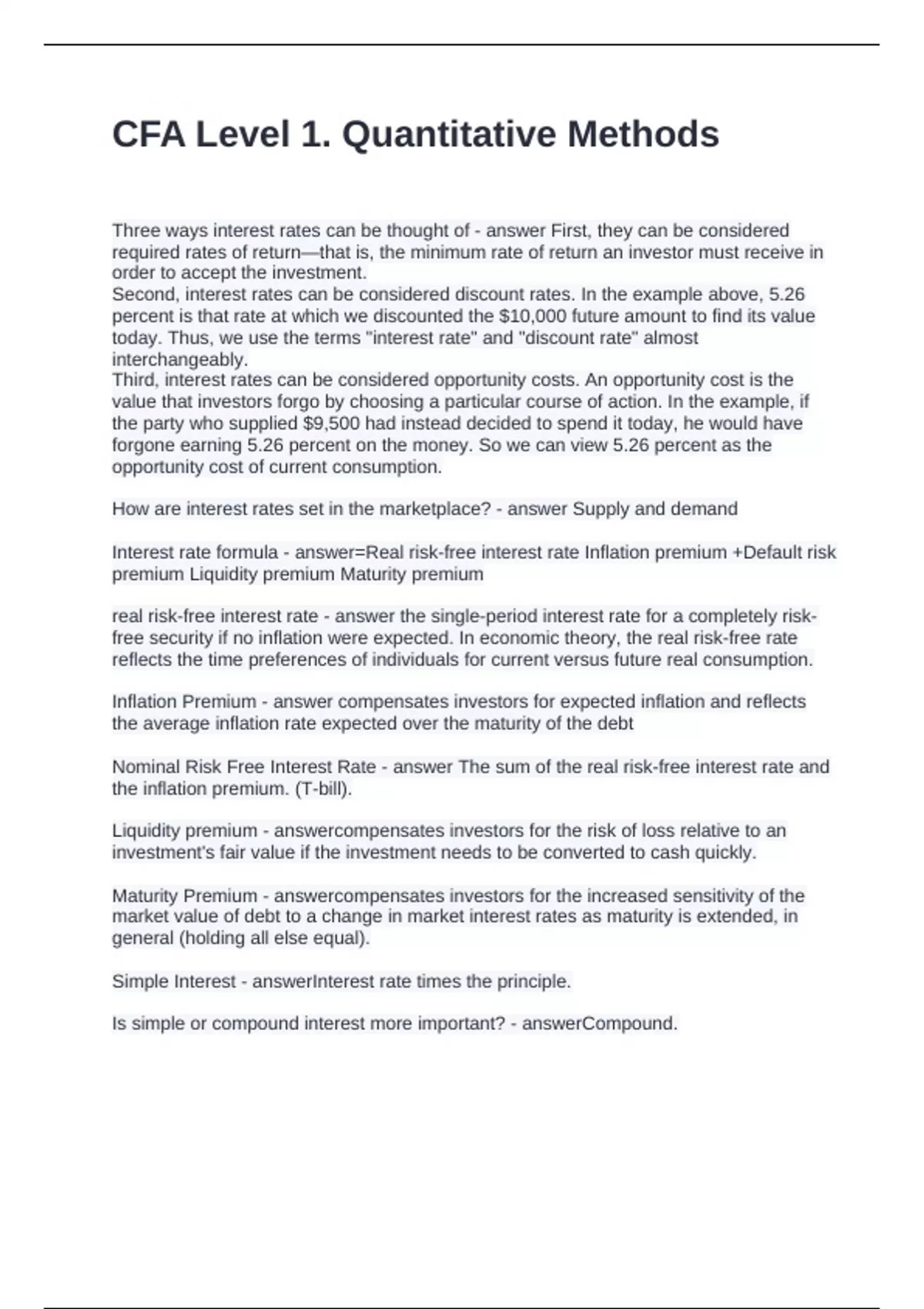 CFA Level 1. Quantitative Methods Questions and Answers 2024