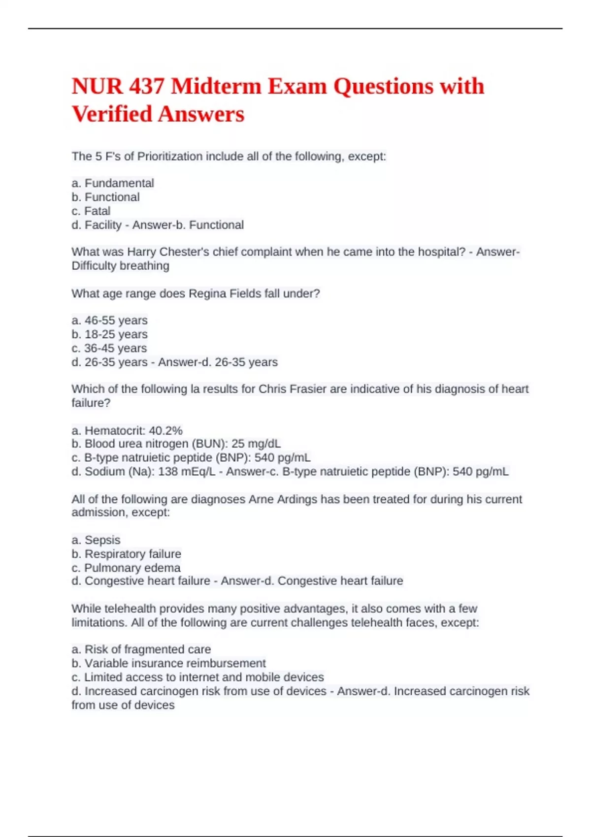 d. Sodium (Na): 138 mEq/L - Answer-c. B-type natruietic peptide (BNP): 540 pg/mL