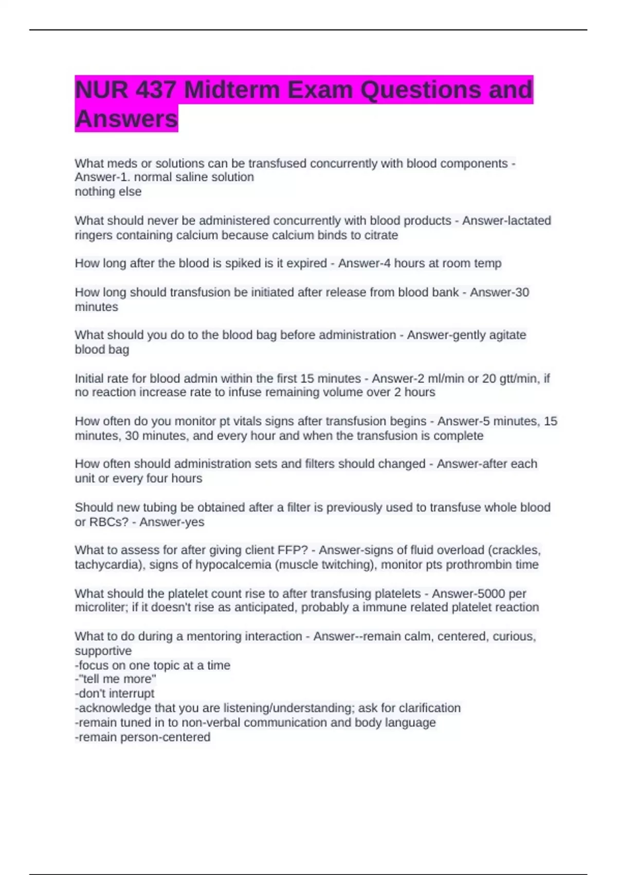 What to assess for after giving client FFP? - Answer-signs of fluid overload (crackles,