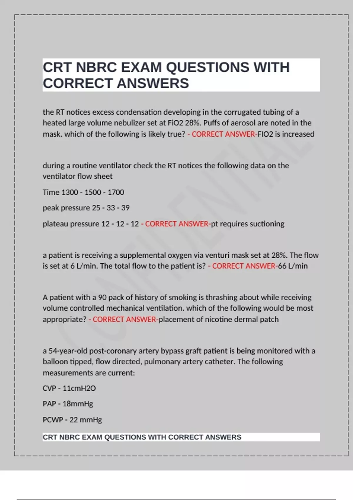 CRT NBRC EXAM QUESTIONS WITH