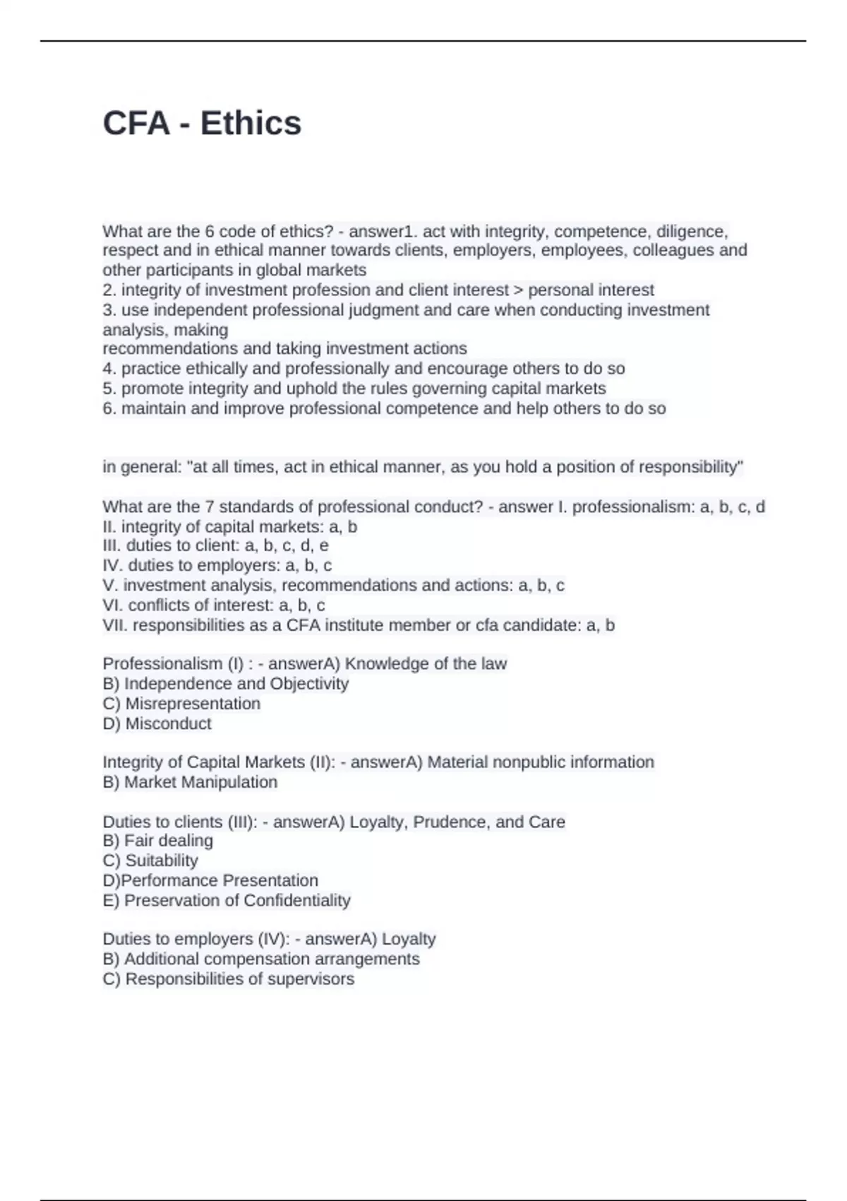 CFA - Ethics
