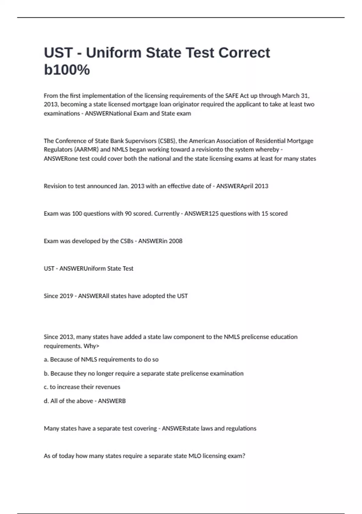 UST - Uniform State Test Correct