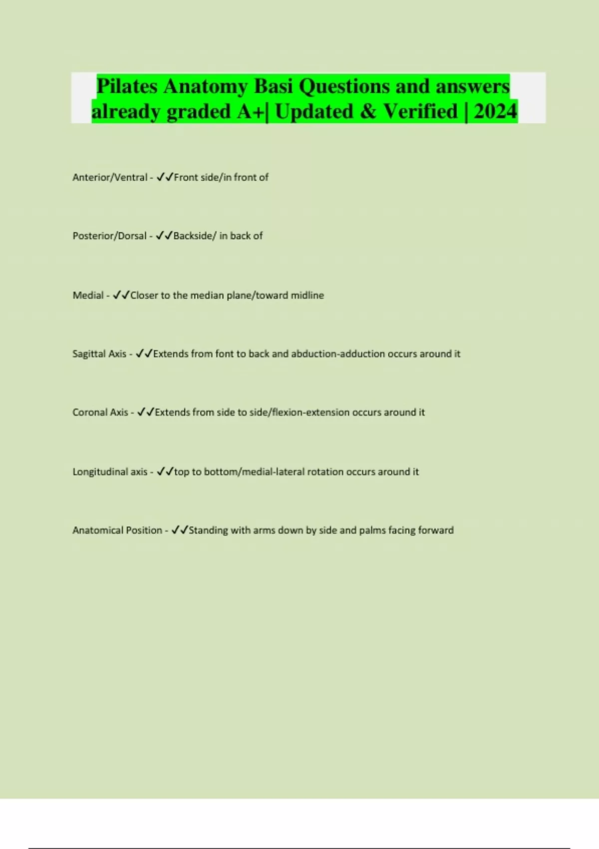 Pilates Anatomy Basi Questions and answers already graded A+| Updated & Verified | 2024
