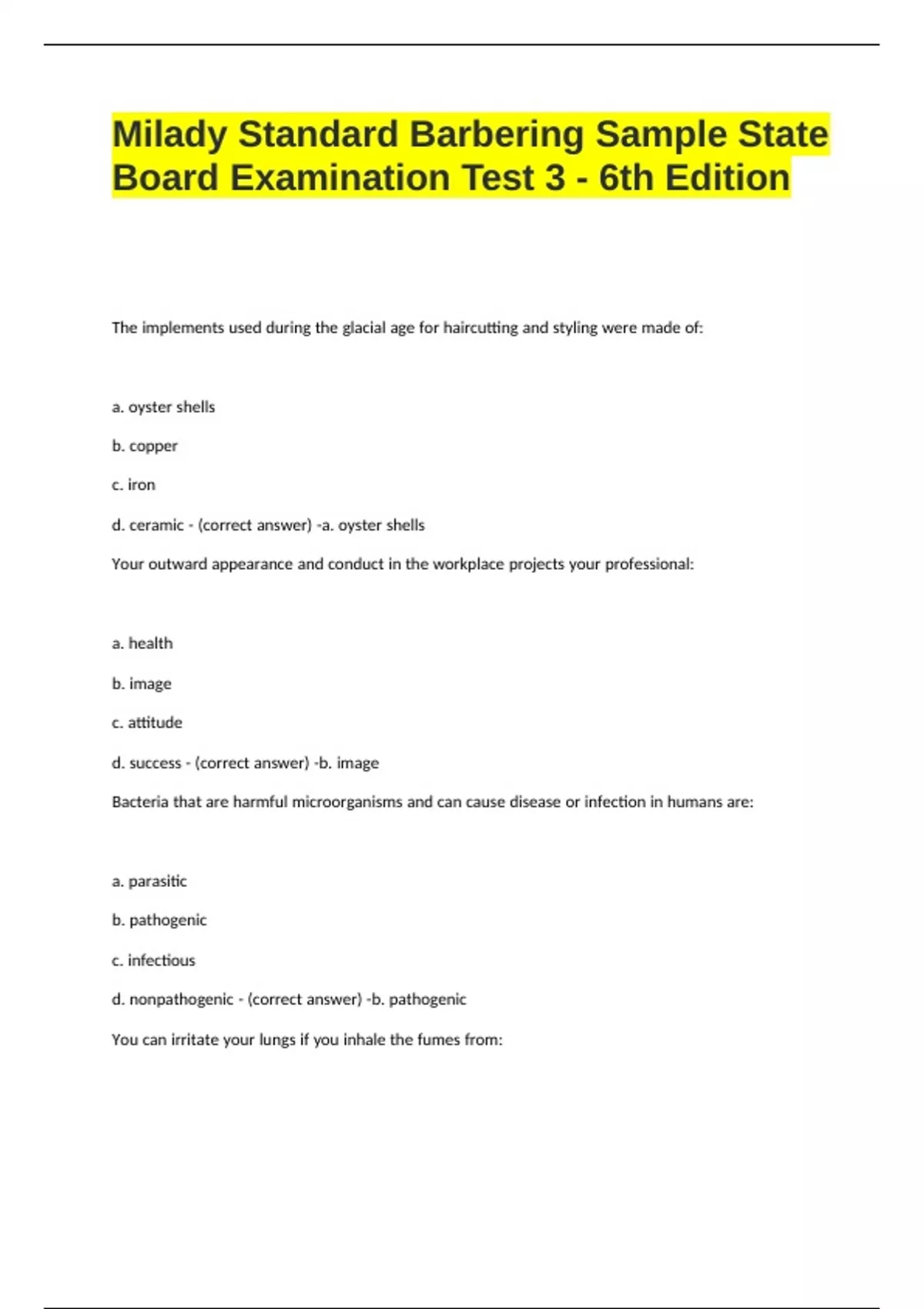 Milady Standard Barbering Sample State