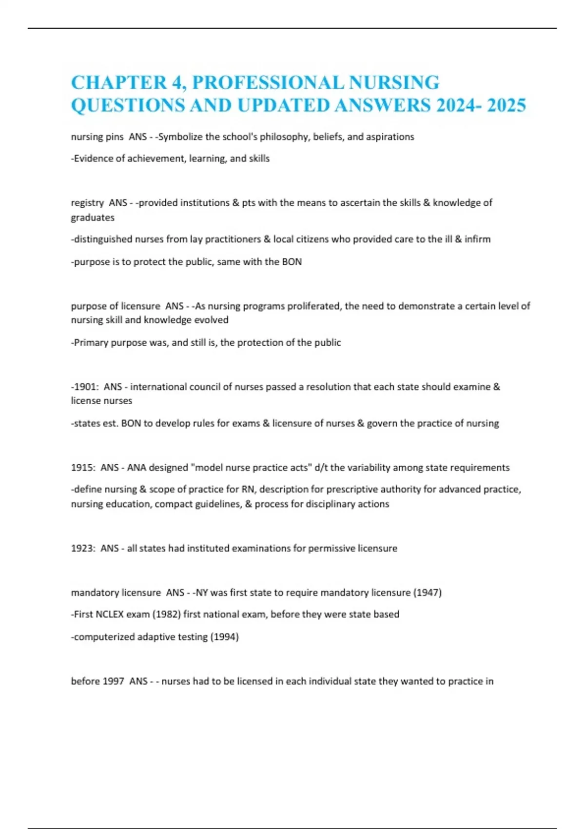 CHAPTER 4, PROFESSIONAL NURSING QUESTIONS AND ANSWERS UPDATED