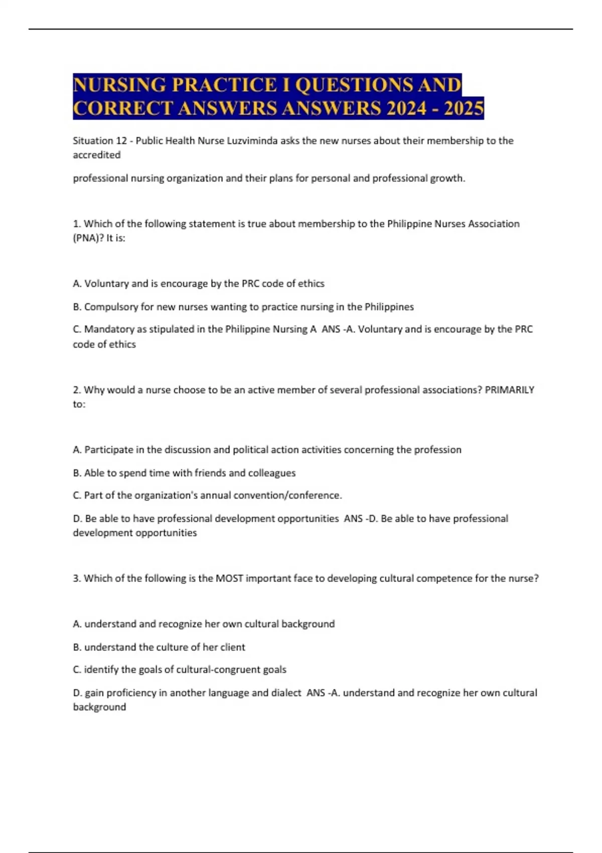 1. Which of the following statement is true about membership to the Philippine Nurses Association