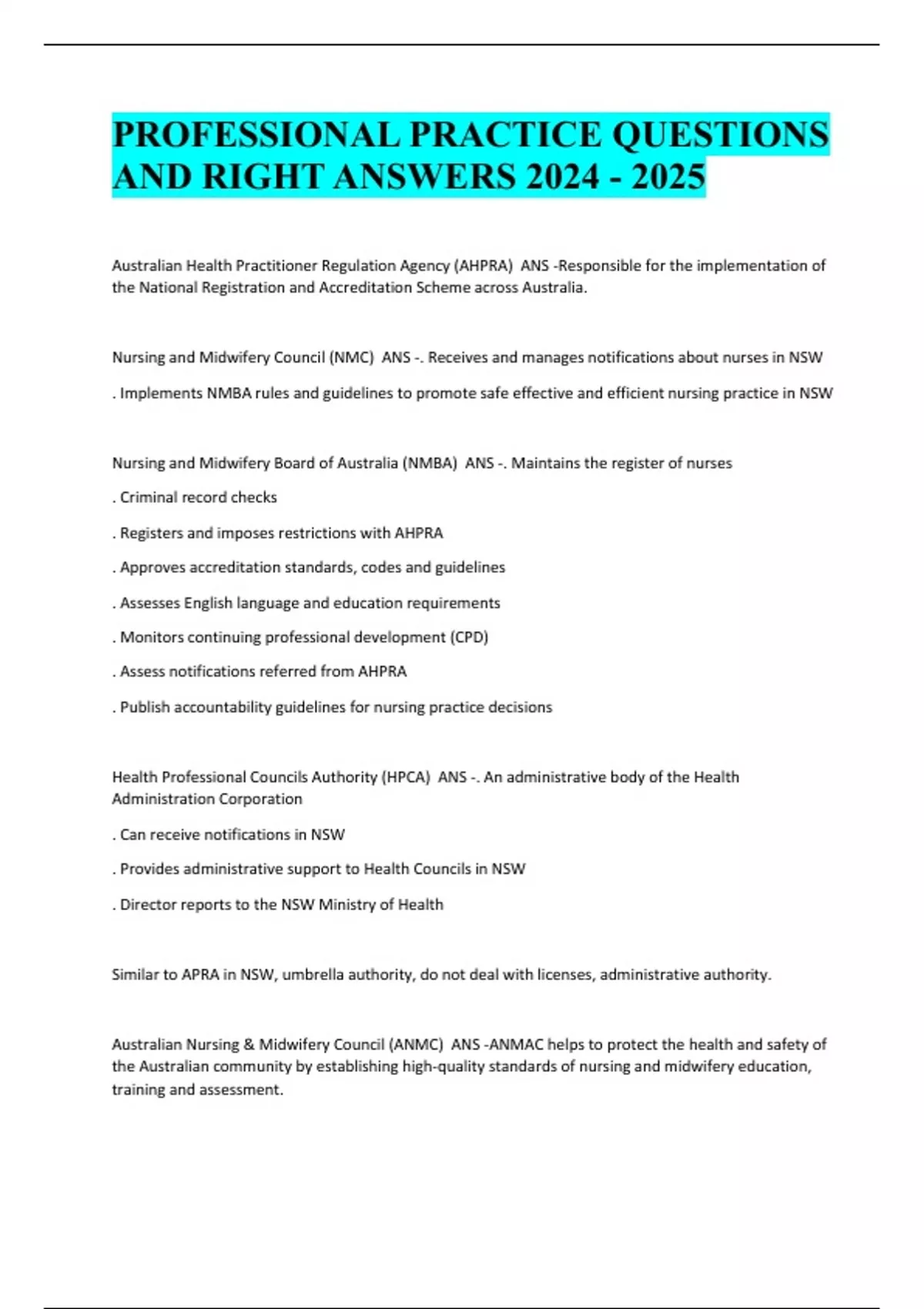 - NMBA regulates Nurses & Midwives