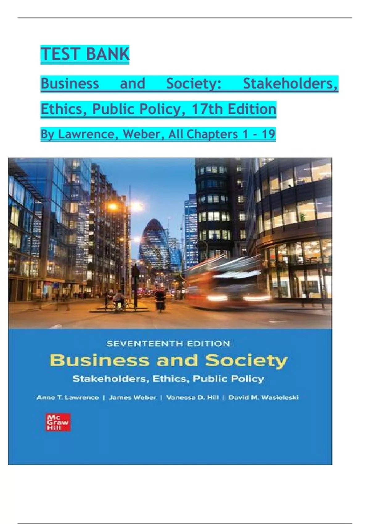 TEST BANK for Business and Society 17th Edition by Lawrence & Weber, ISBN: 9781265079246, All 19 Chapters Covered, Verified Latest Edition