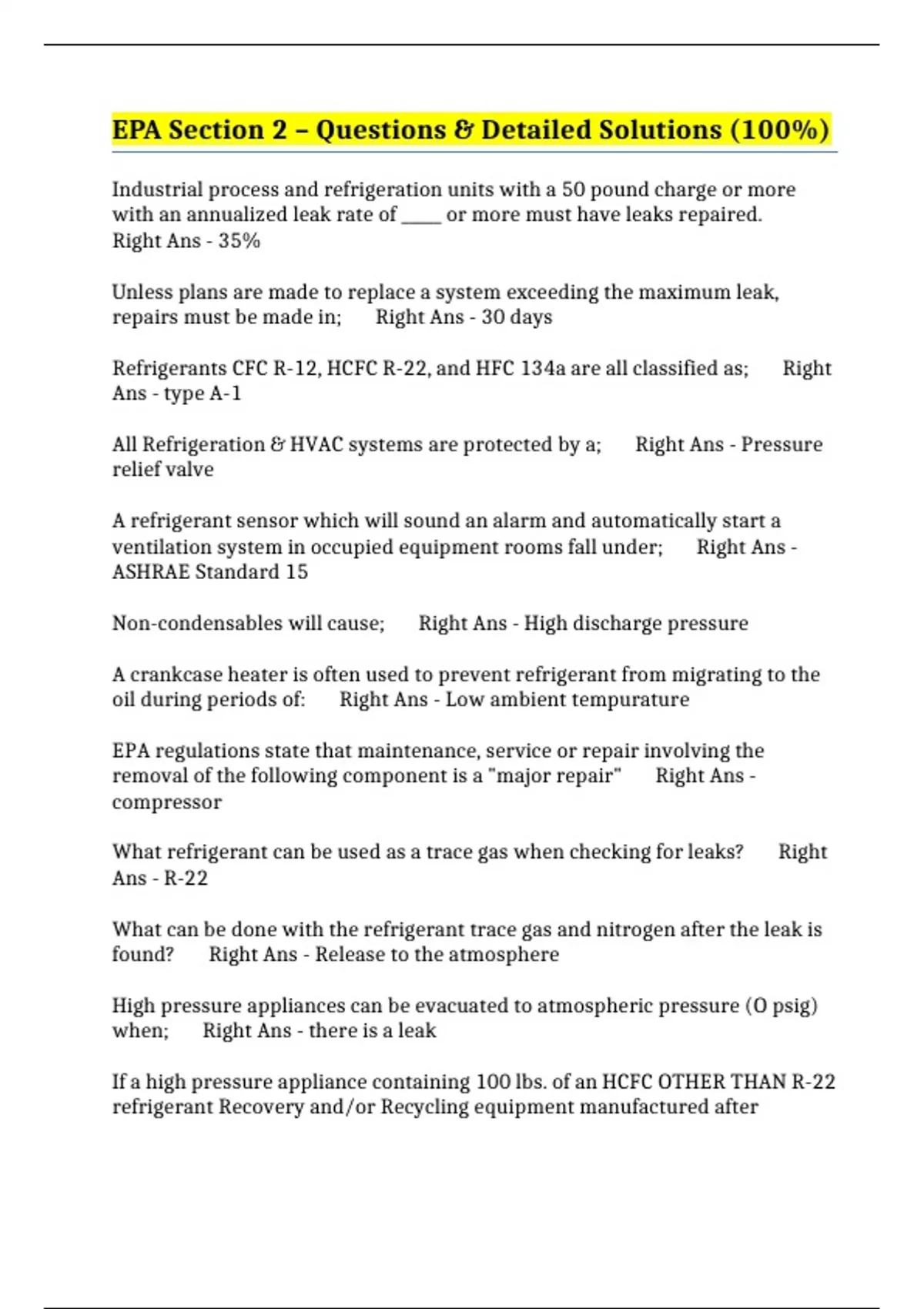 system containing 100 lbs. of R-502 must be evacuated to; Right Ans - 10