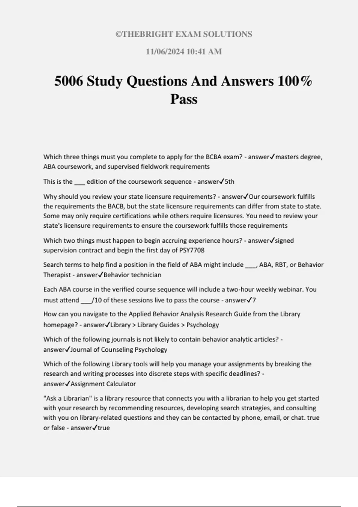 5006 Study Questions And Answers 100%