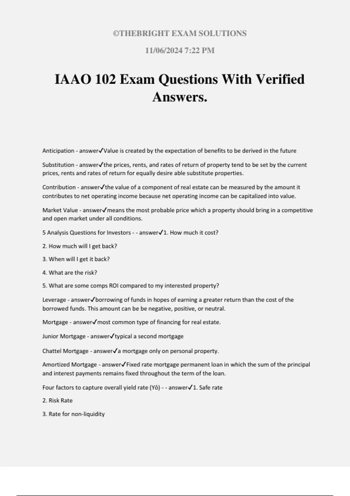 IAAO 102 Exam Questions With Verified