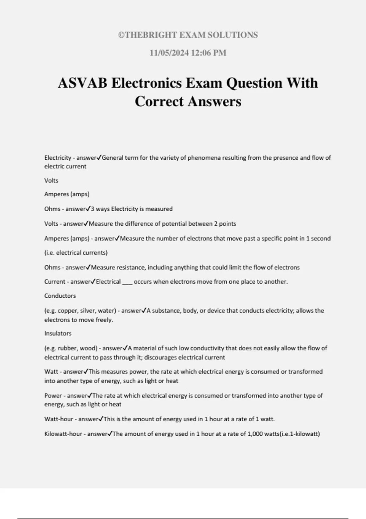 Electricity - answer✔General term for the variety of phenomena resulting from the presence and flow of
