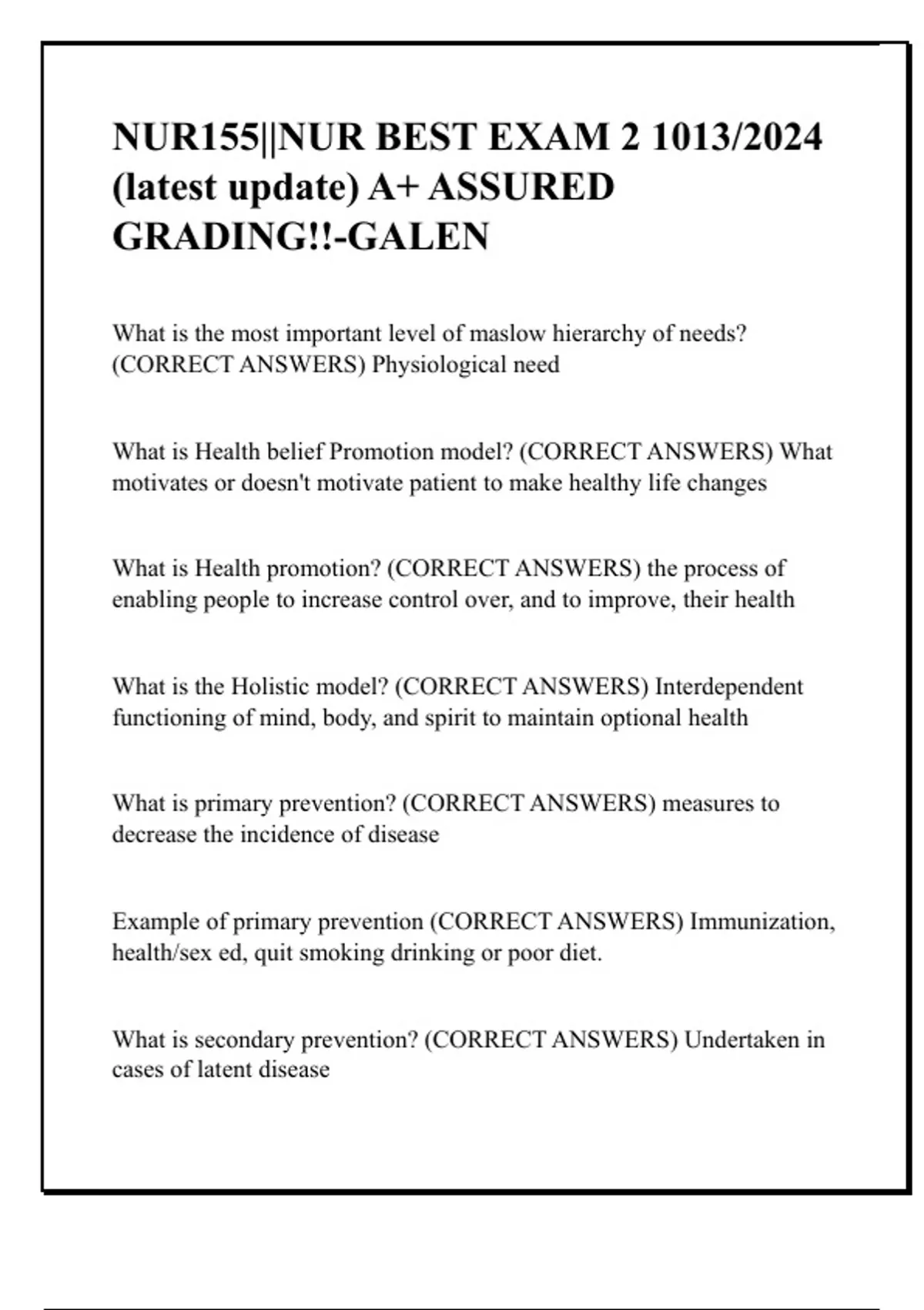 NUR155||NUR BEST EXAM 2 1013/2024 (latest update) A+ ASSURED GRADING!!-GALEN