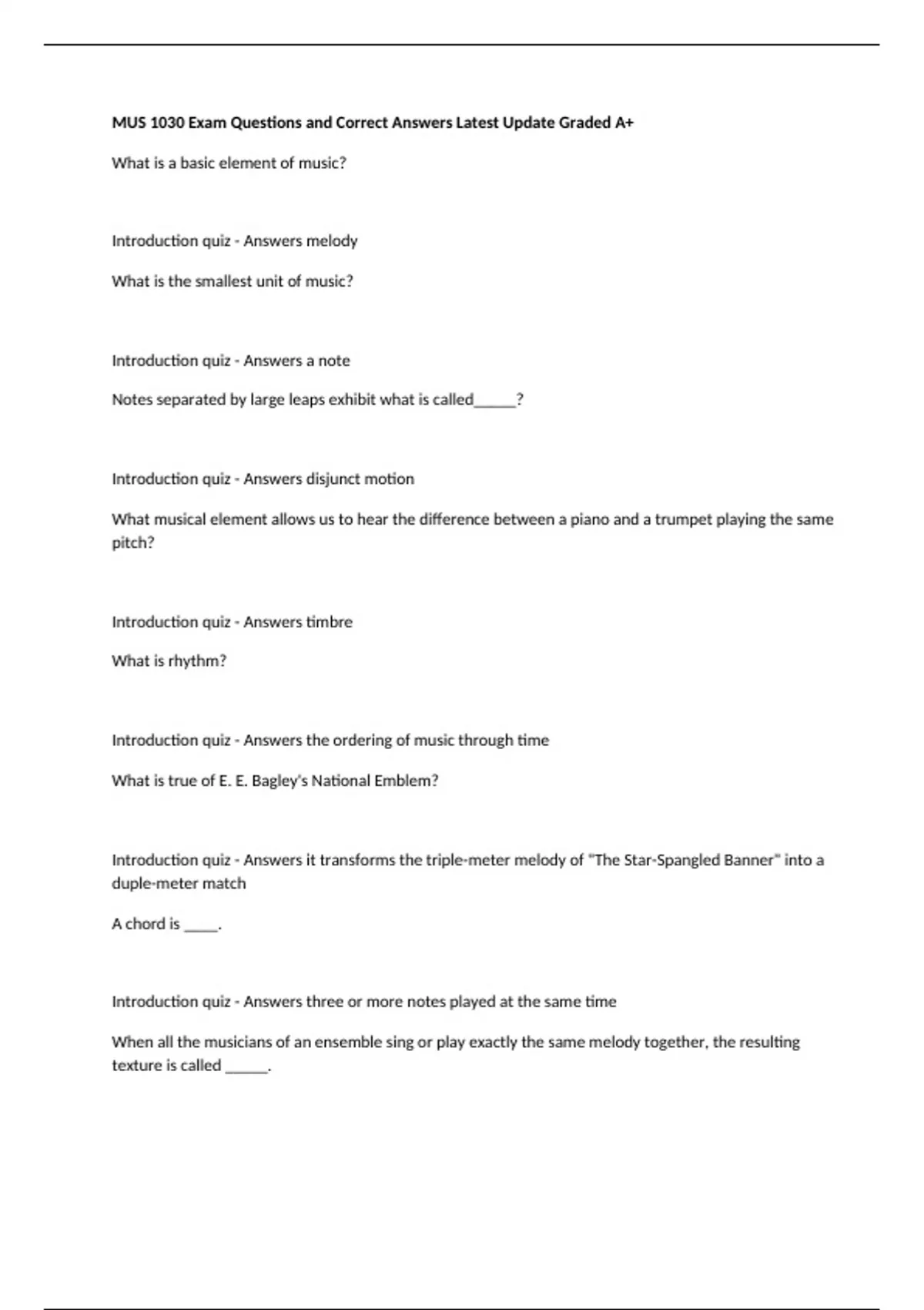 Introduction quiz - Answers melody