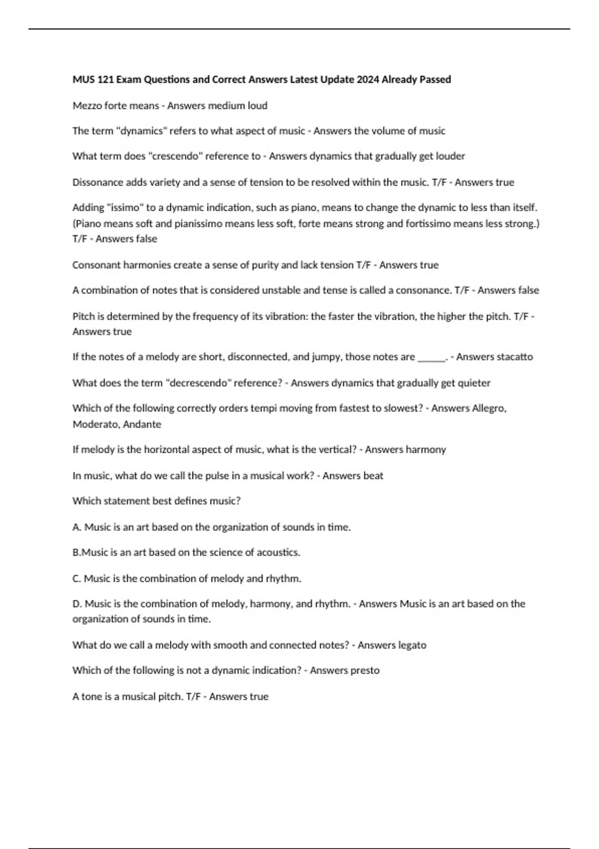 D. Music is the combination of melody, harmony, and rhythm. - Answers Music is an art based on the