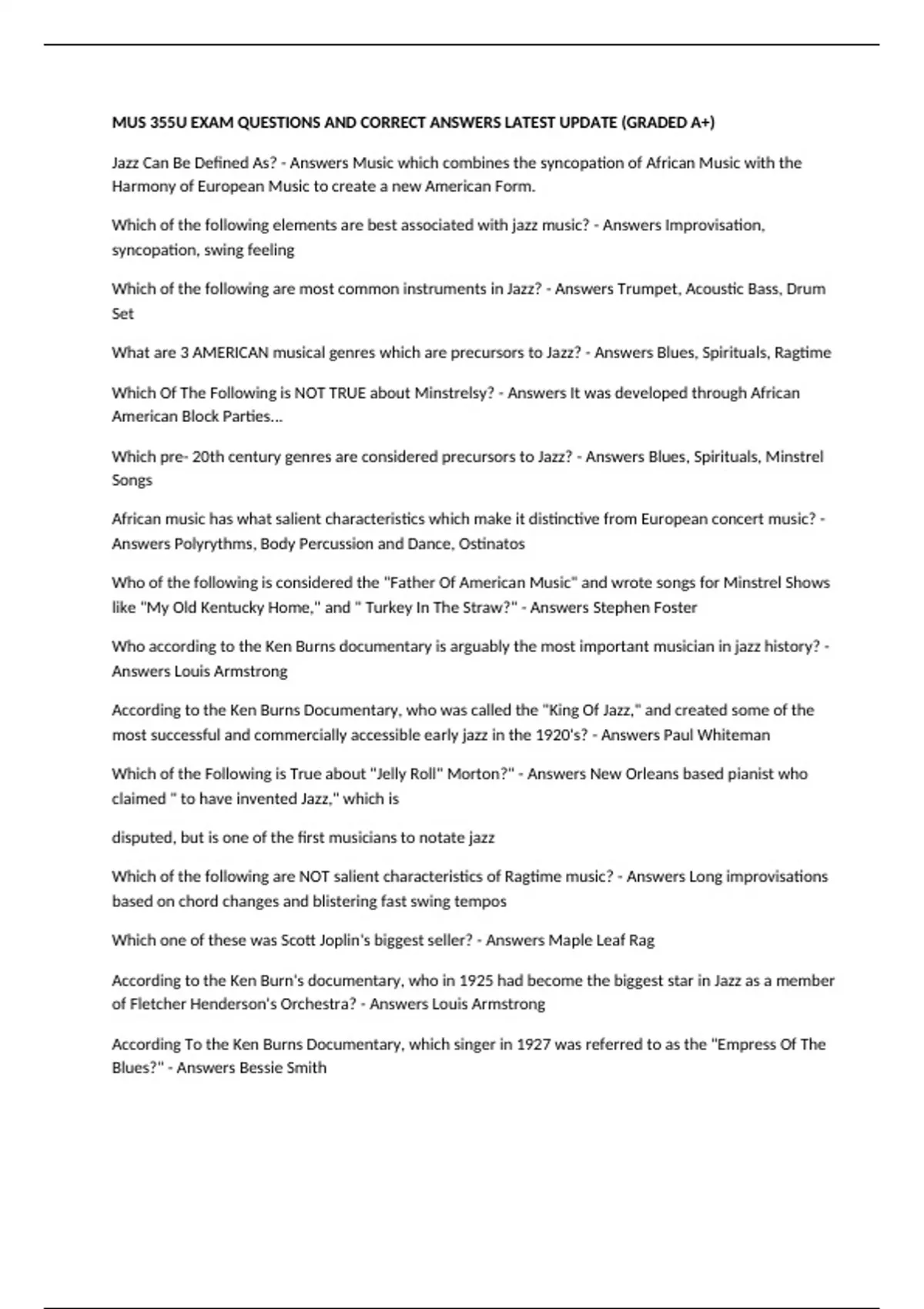 Which of the following elements are best associated with jazz music? - Answers Improvisation,