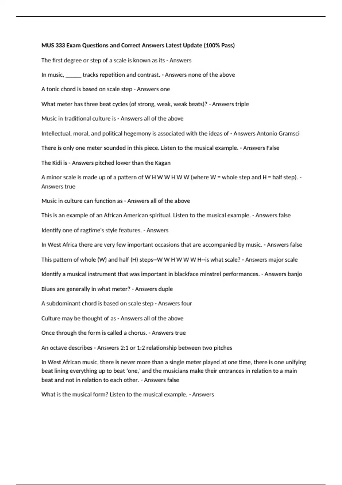 What is the musical form? Listen to the musical example. - Answers