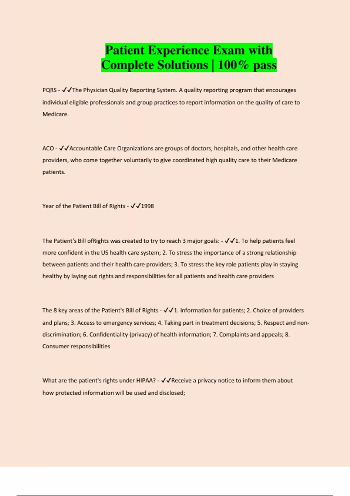 The 8 key areas of the Patient's Bill of Rights - ✔✔1. Information for patients; 2. Choice of providers