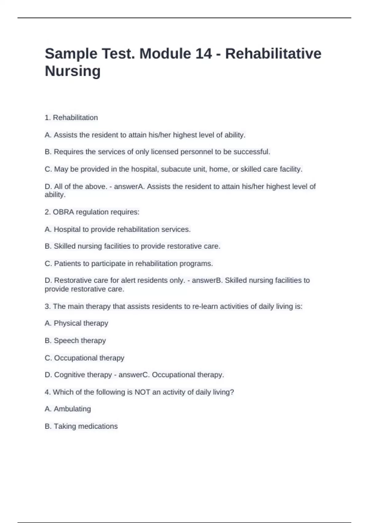 Sample Test. Module 14 - Rehabilitative