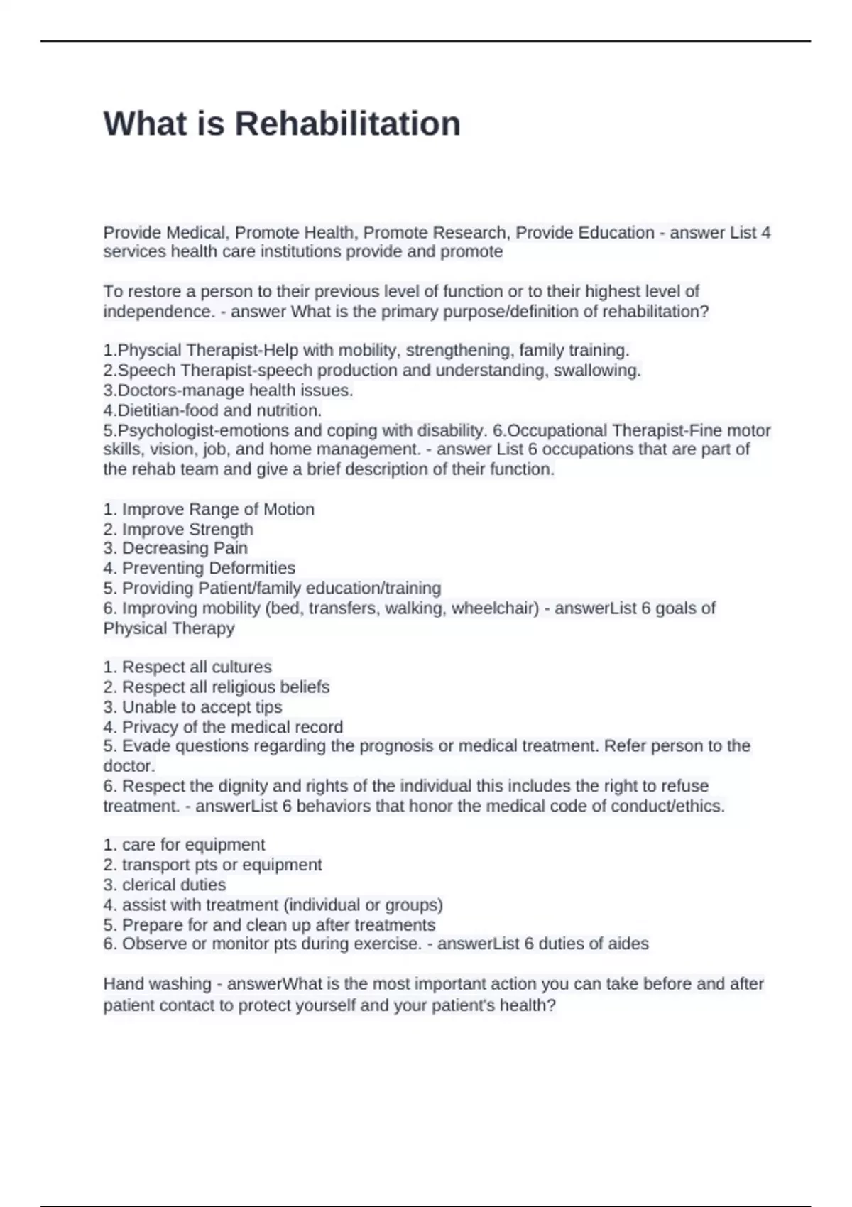 What is Rehabilitation Questions and Answers 100% Solved
