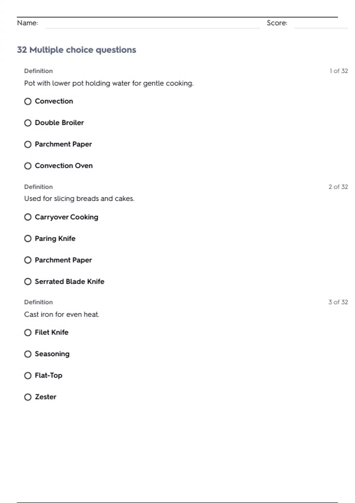 Kitchen Essentials Study Guide Quizzes & Ans!!