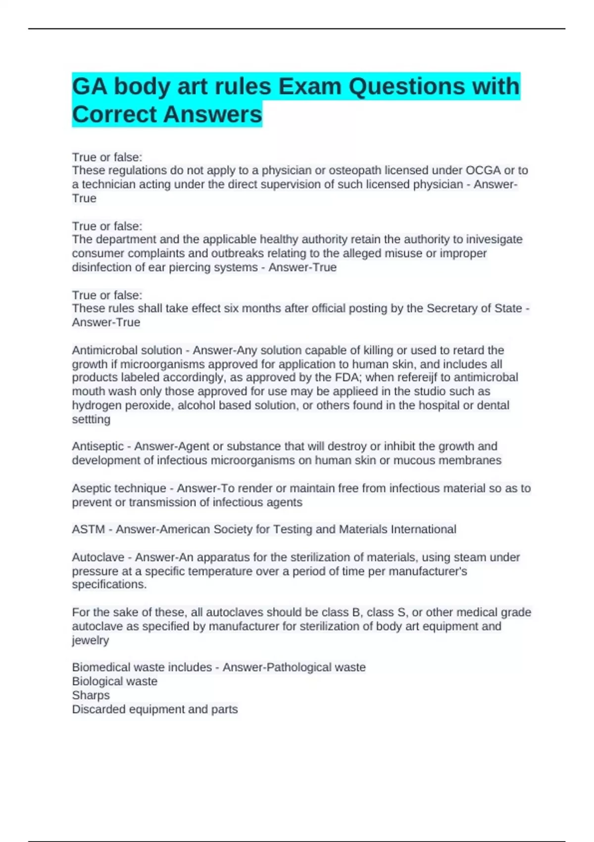 In Georgia Body art does not include - Answer-Implants under the skin, which are