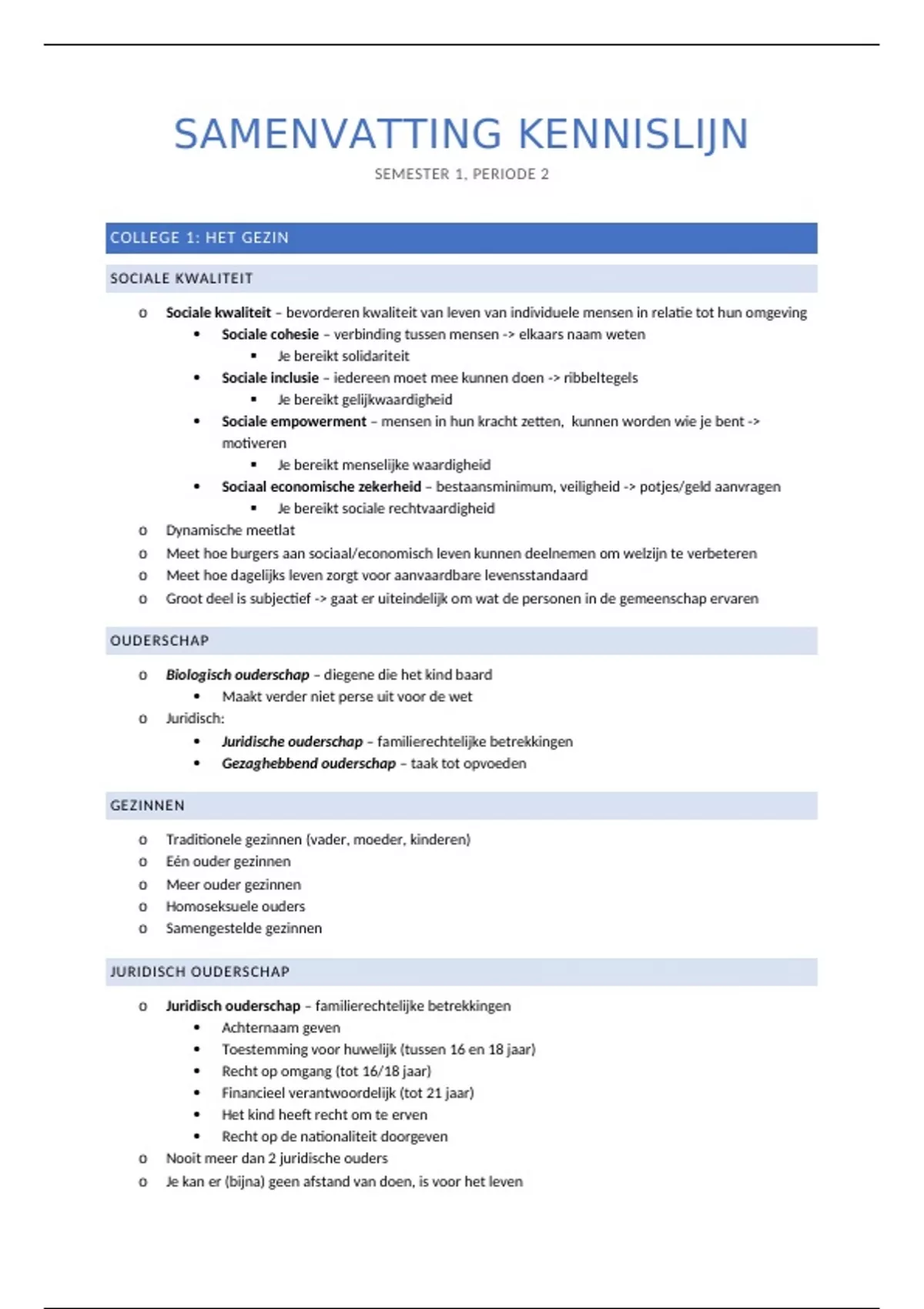 o Gezag – plicht en recht tot opvoeding en verzorging van het kind