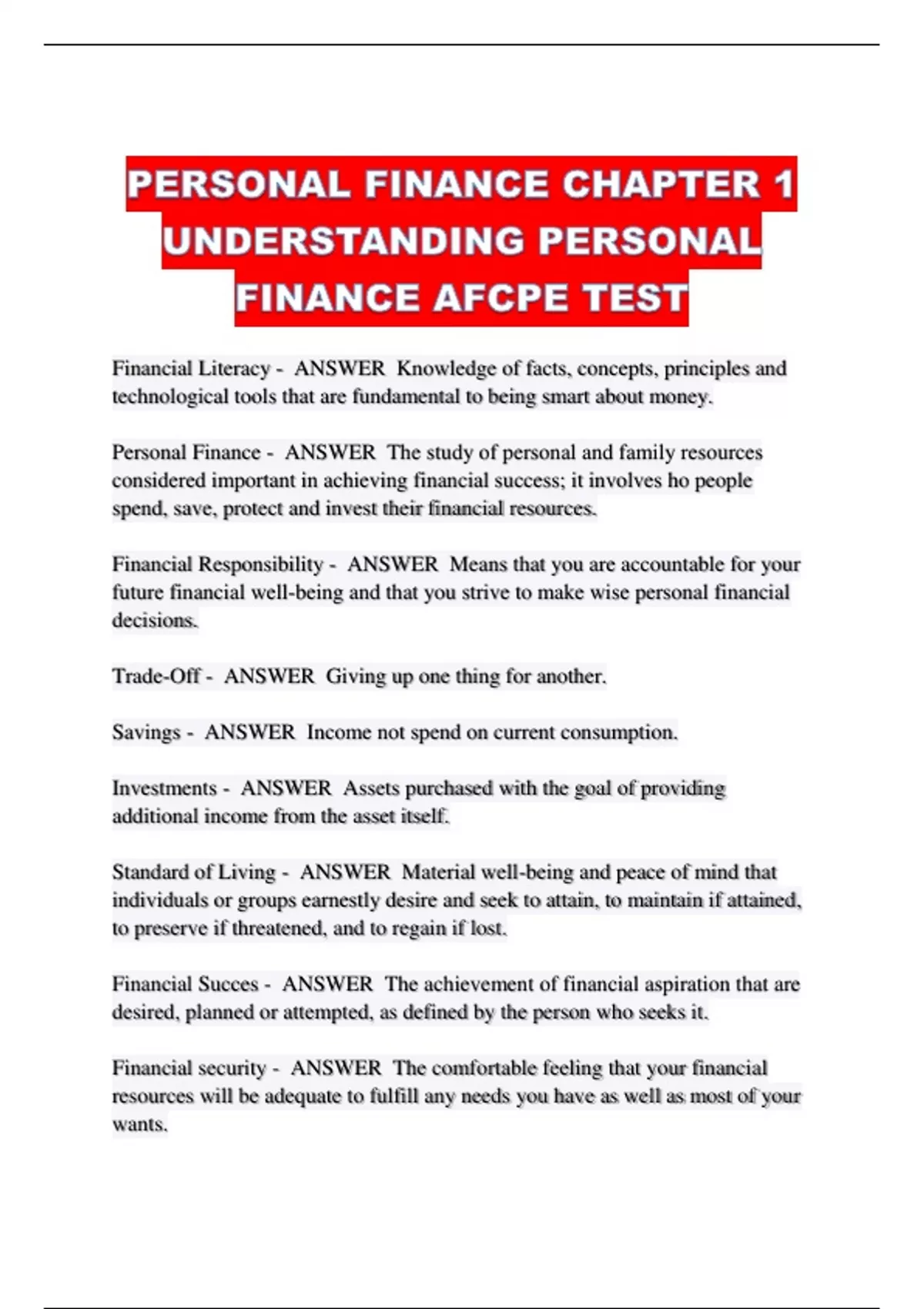 PERSONAL FINANCE CHAPTER 1 UNDERSTANDING PERSONAL FINANCE AFCPE TEST...
