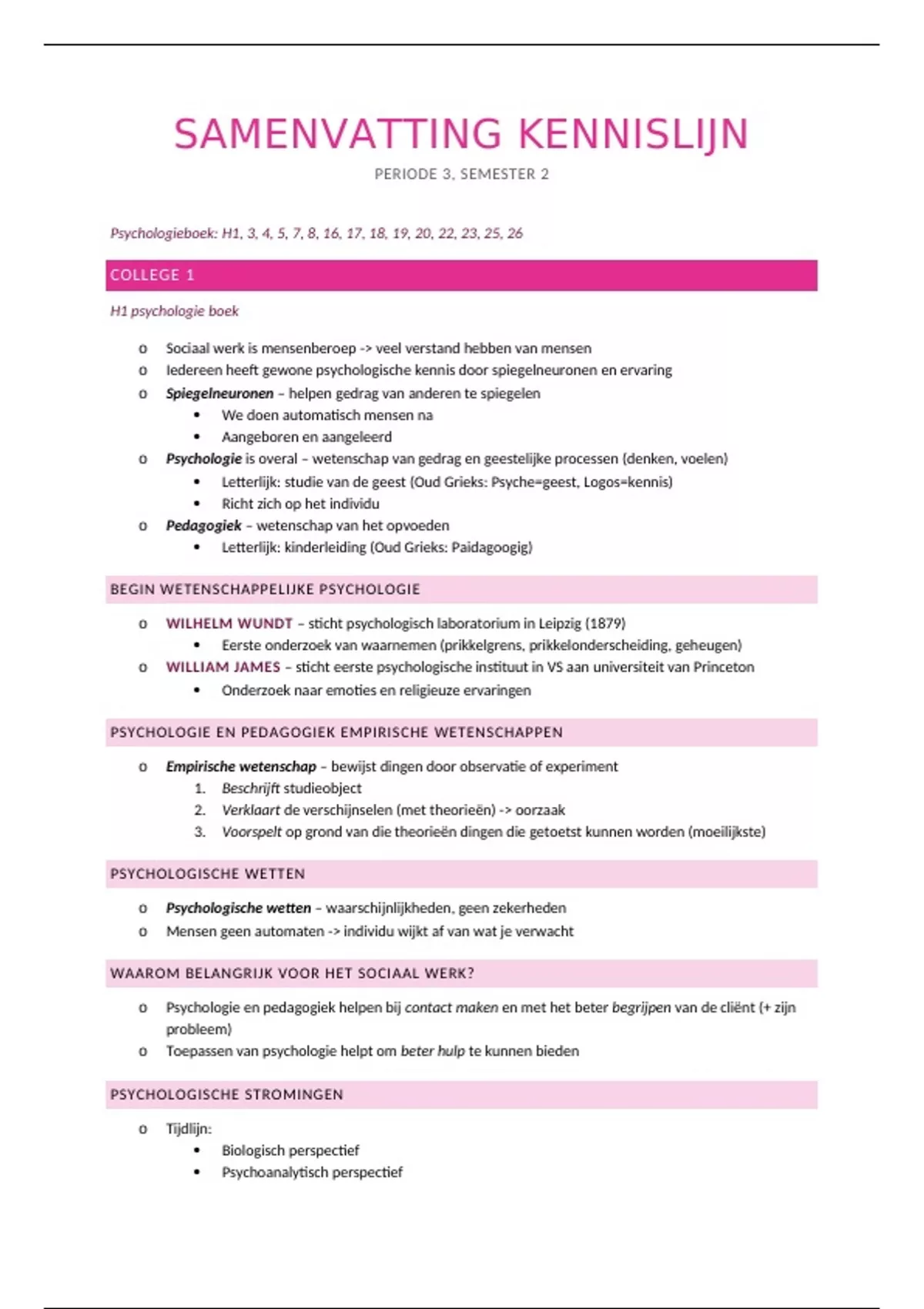 Psychologieboek: H1, 3, 4, 5, 7, 8, 16, 17, 18, 19, 20, 22, 23, 25, 26