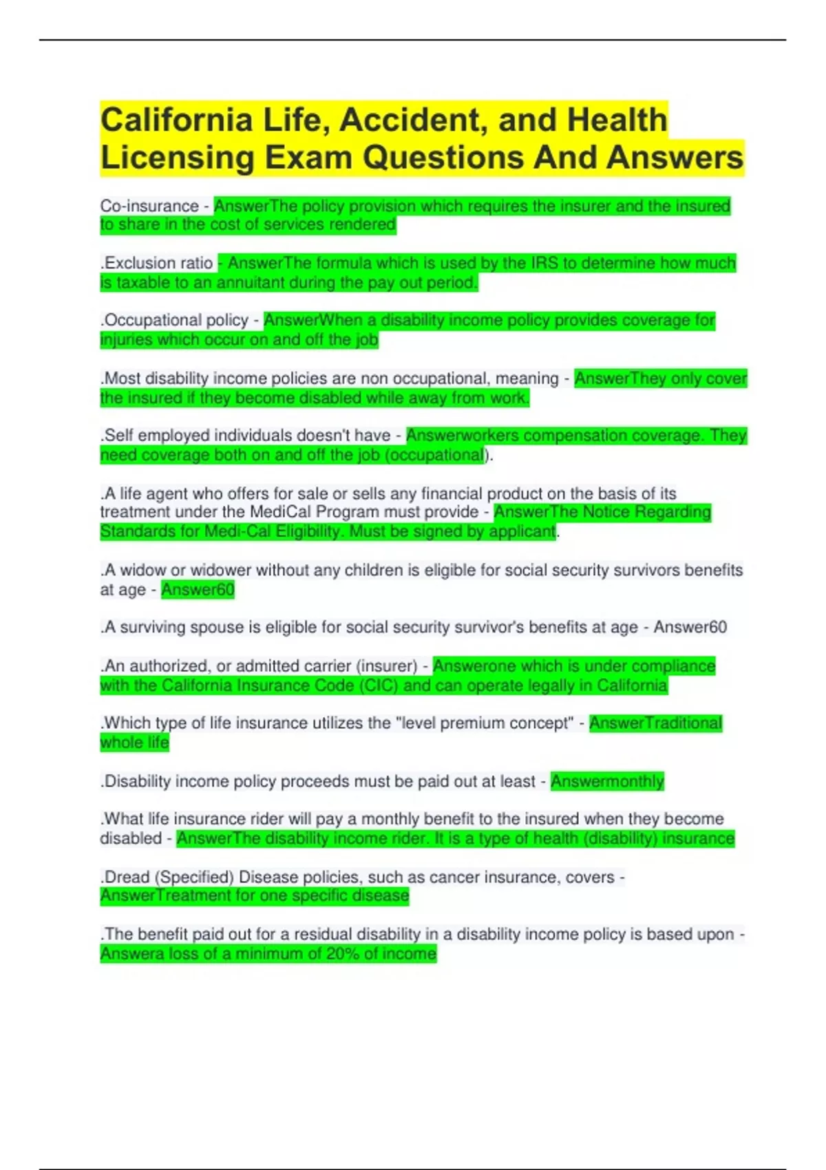 .Most disability income policies are non occupational, meaning - AnswerThey only cover
