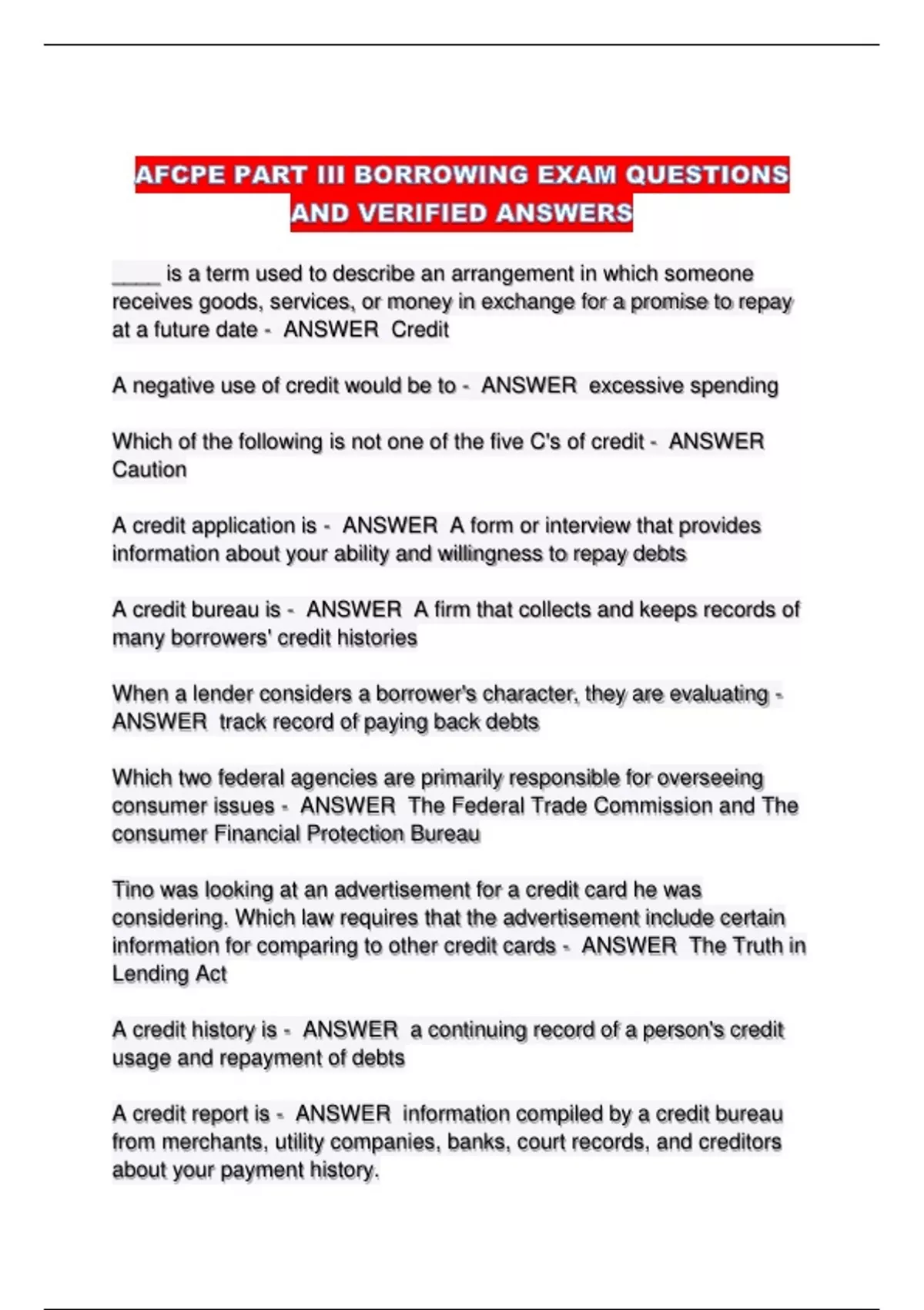 A credit report is - ANSWER information compiled by a credit bureau