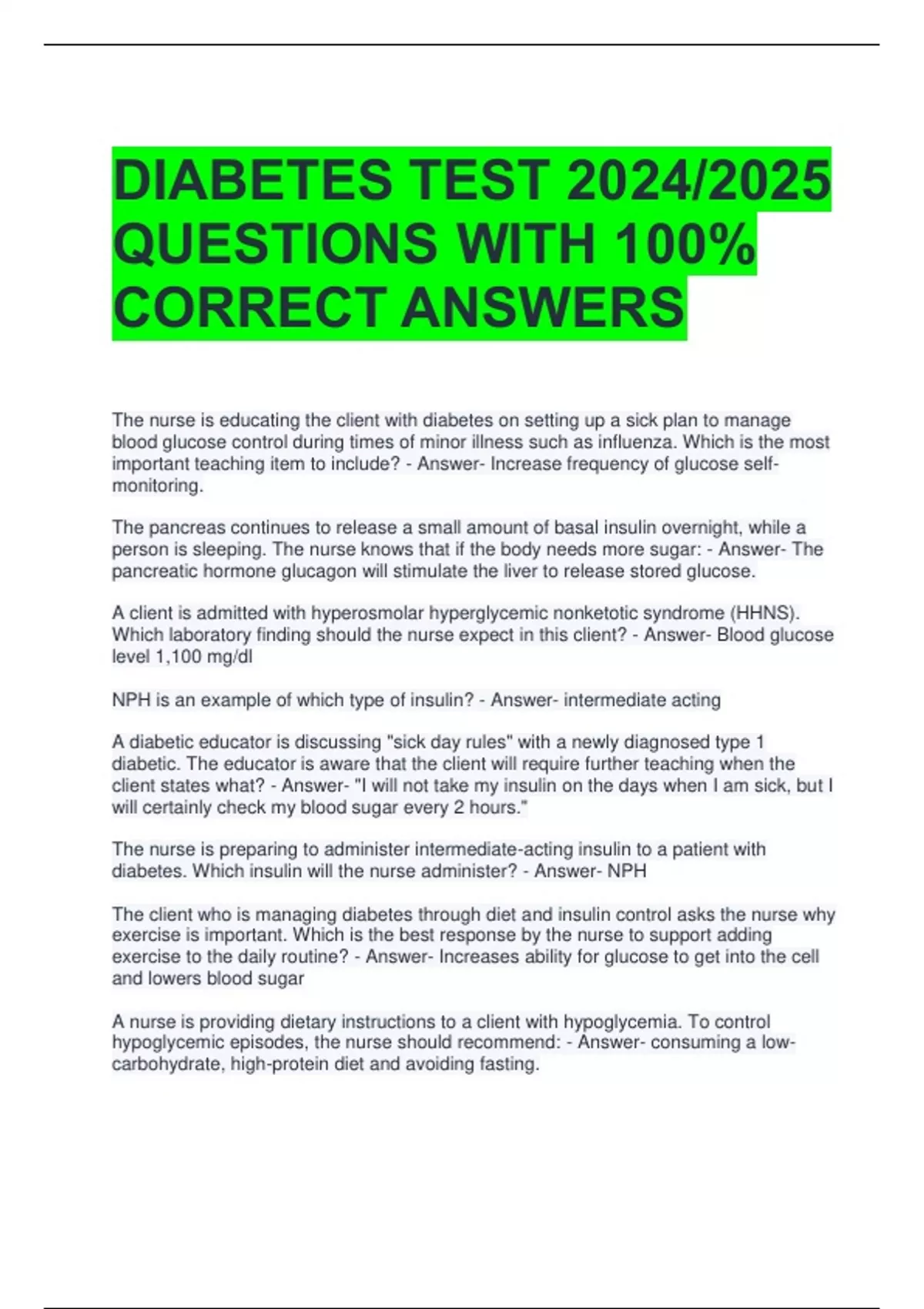 DIABETES TEST 2024/2025 QUESTIONS WITH 100% CORRECT ANSWERS