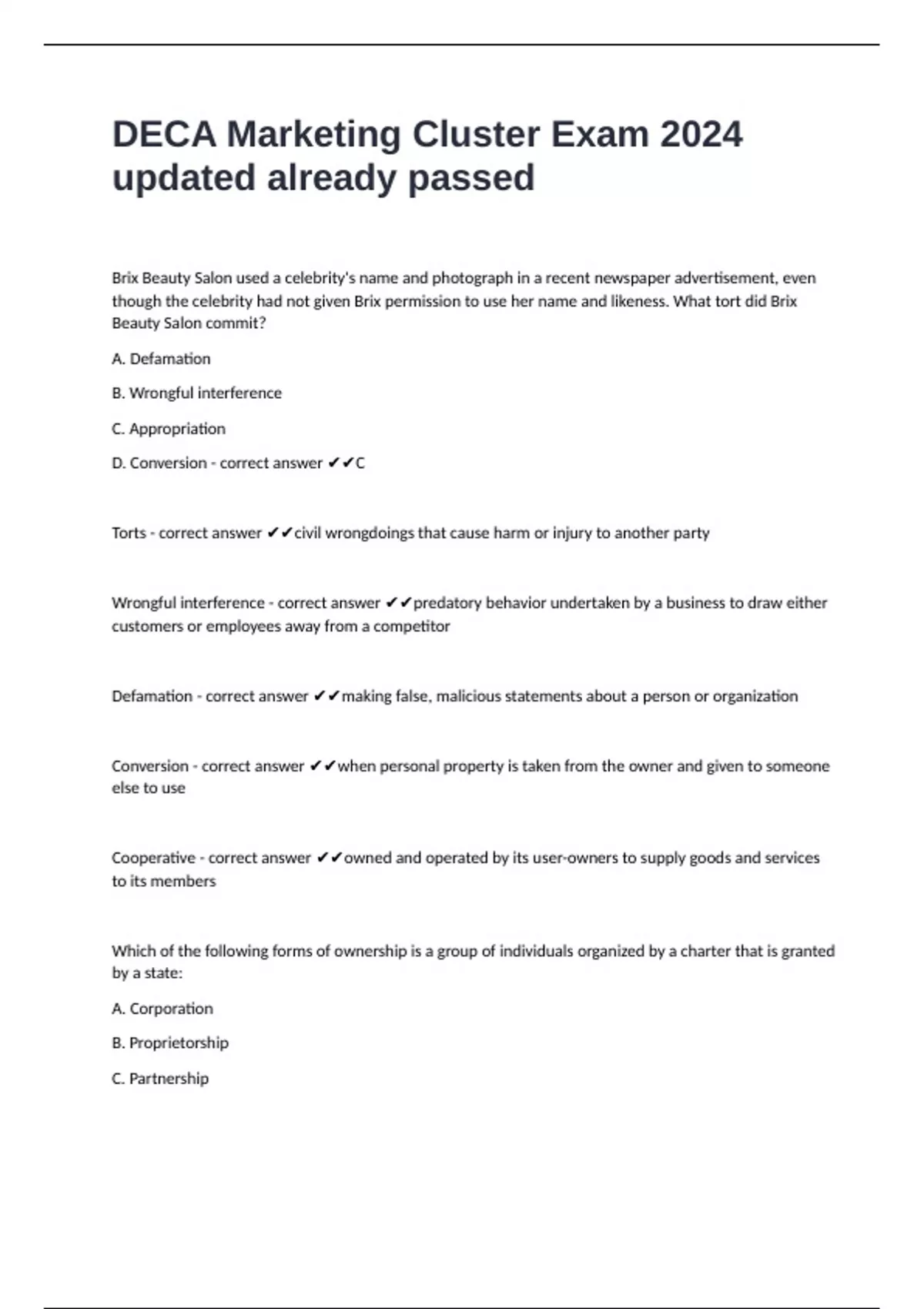 , D. Cooperative - correct answer ✔✔A