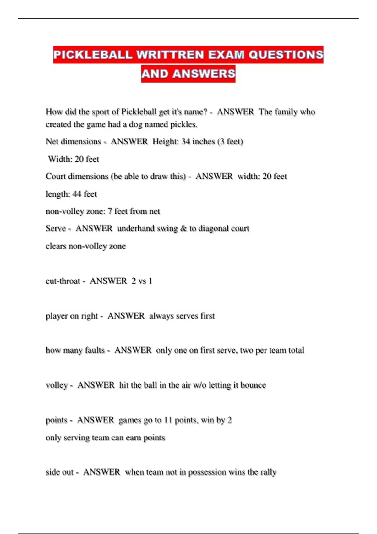 points - ANSWER games go to 11 points, win by 2