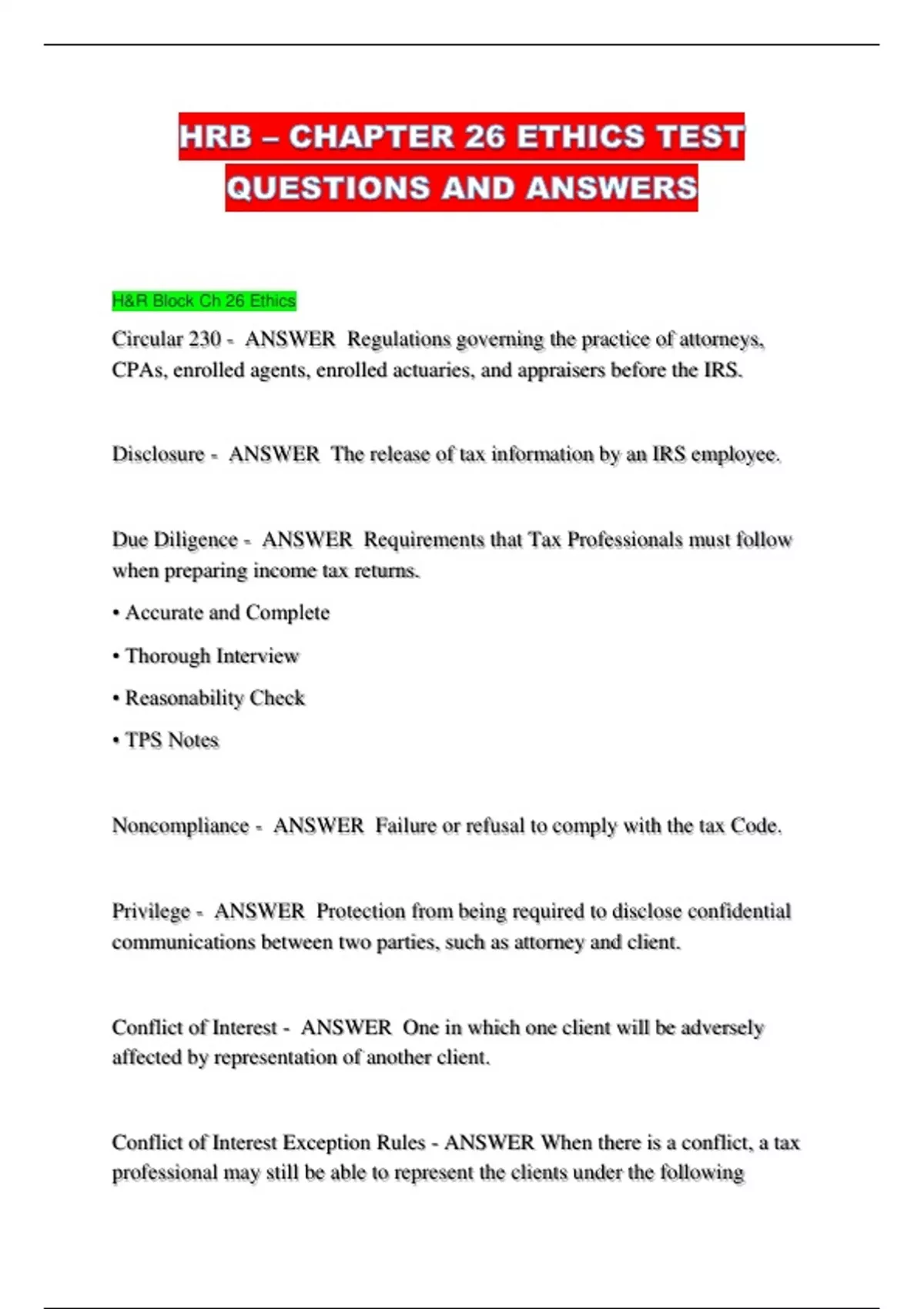 Due Diligence - ANSWER Requirements that Tax Professionals must follow