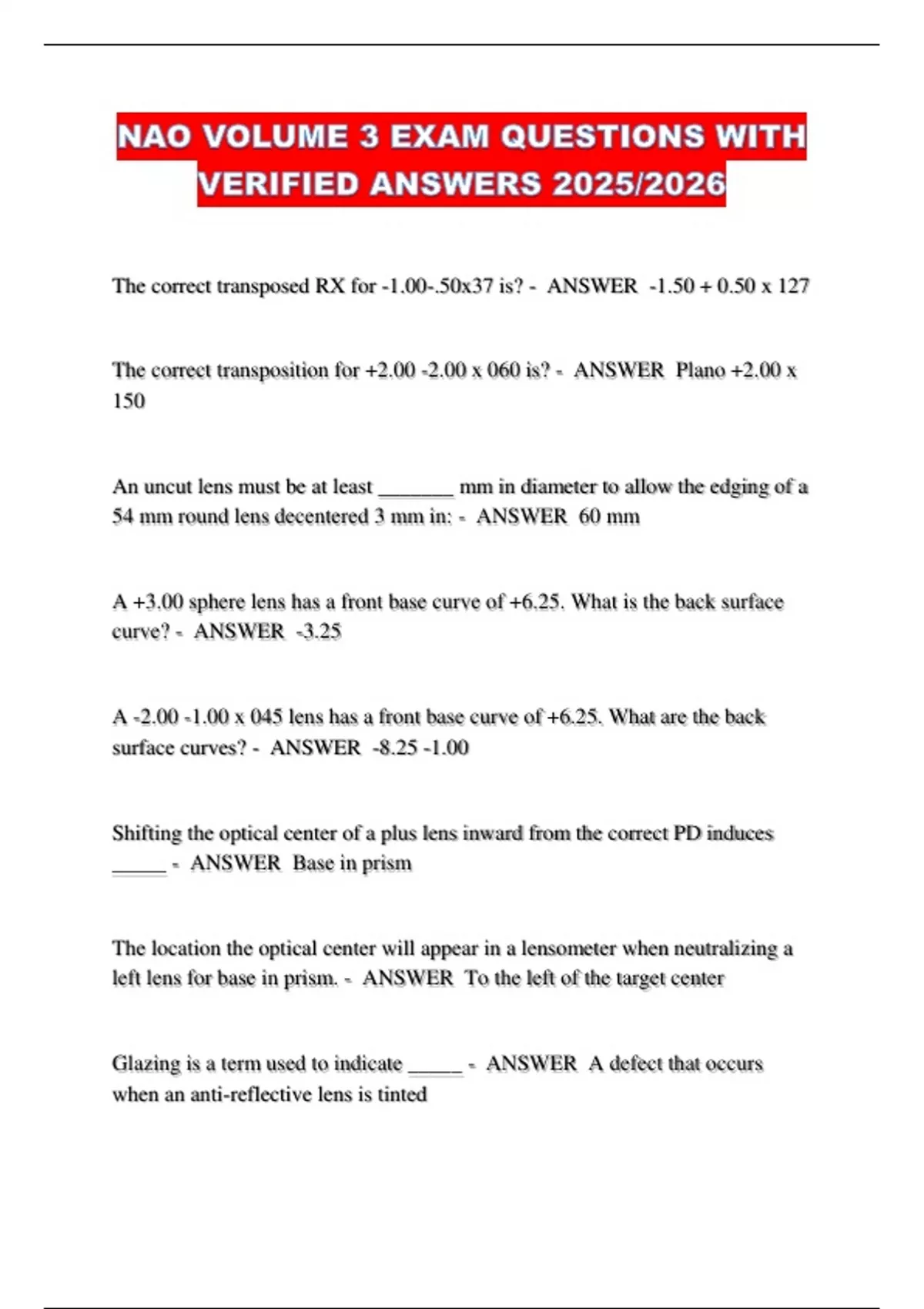 The correct transposed RX for -1.00-.50x37 is? - ANSWER -1.50 + 0.50 x 127