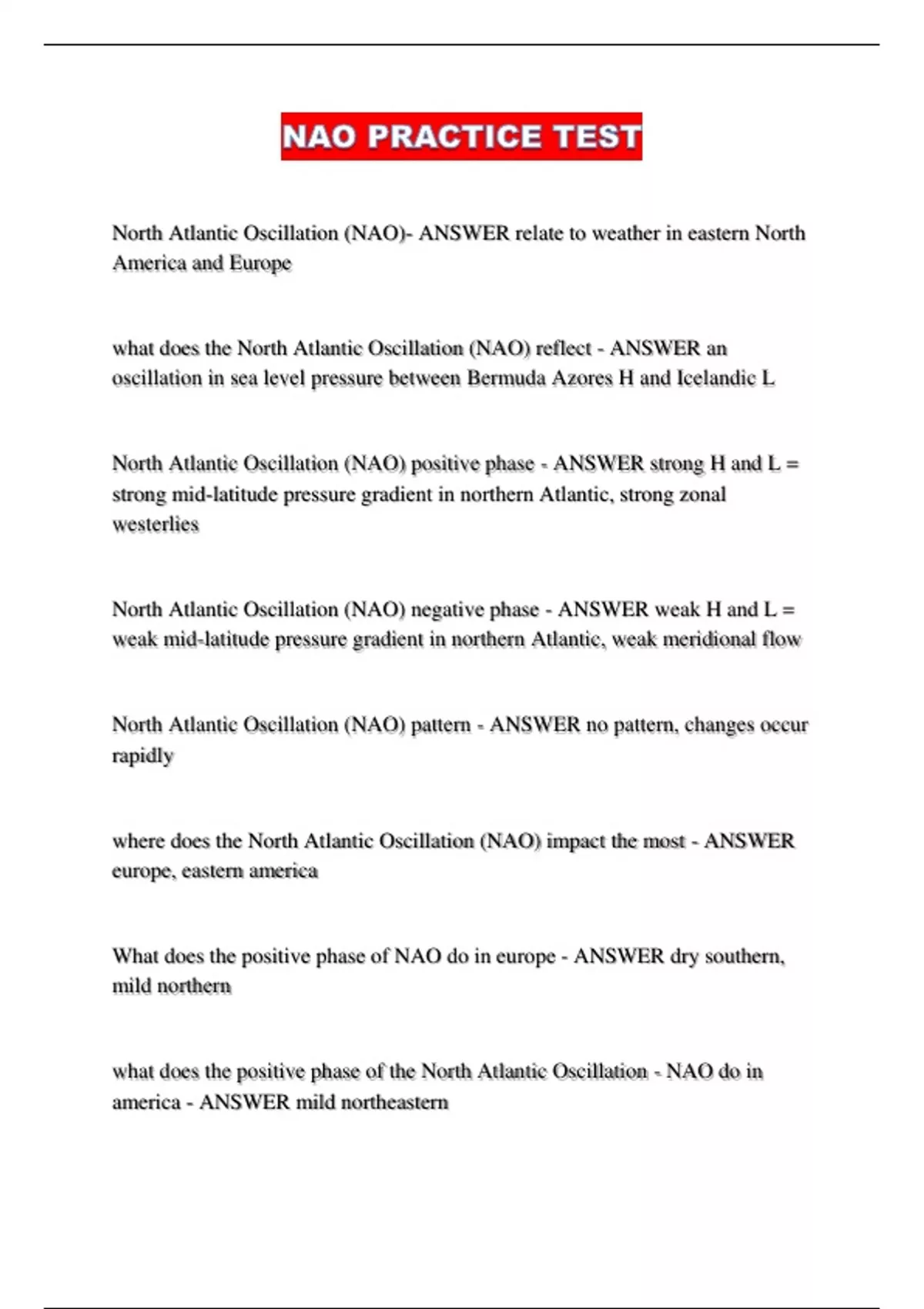 North Atlantic Oscillation (NAO)- ANSWER relate to weather in eastern North