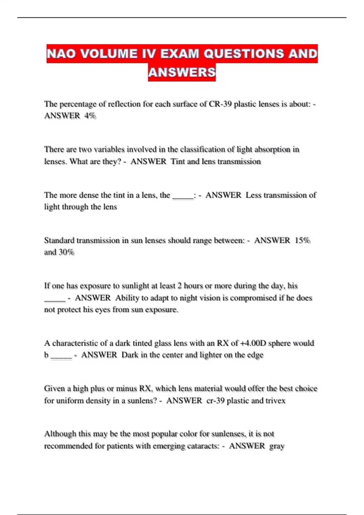 The more dense the tint in a lens, the _____: - ANSWER Less transmission of