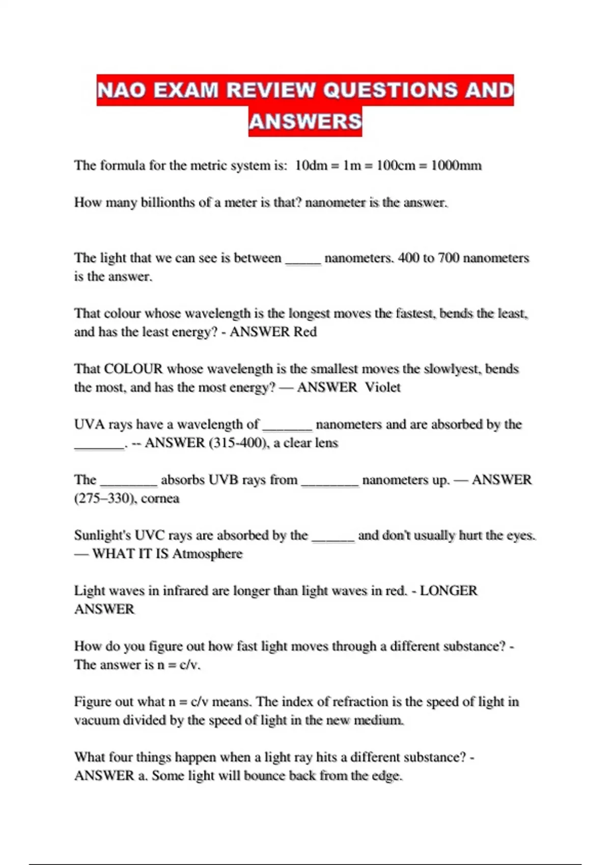 _______. -- ANSWER (315-400), a clear lens