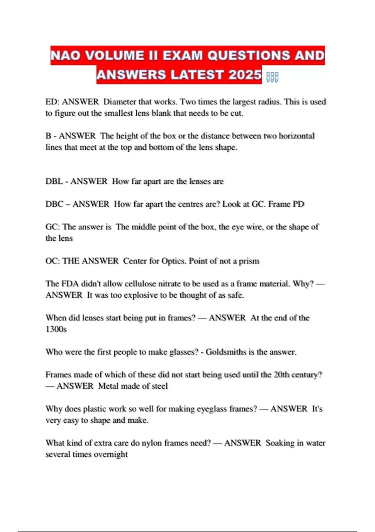 NAO VOLUME II EXAM QUESTIONS AND ANSWERS LATEST 2025 ;;;