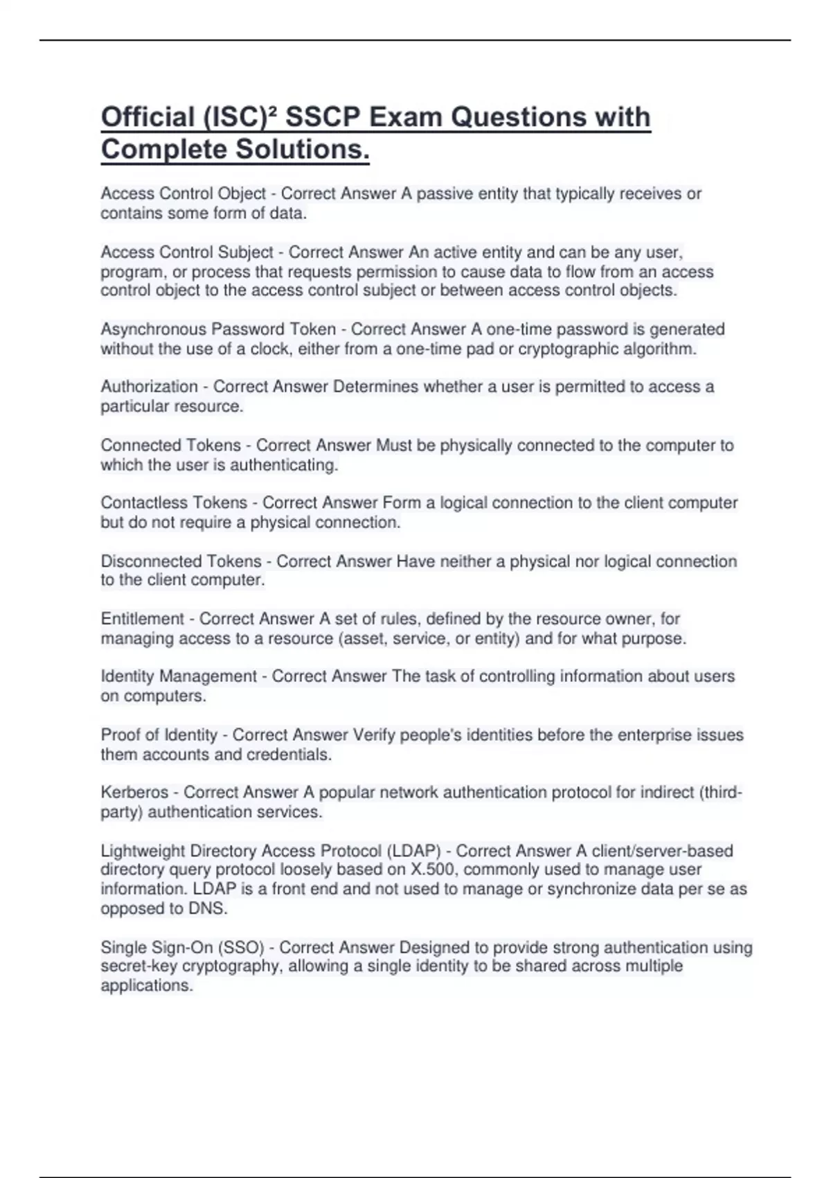 Single Sign-On (SSO) - Correct Answer Designed to provide strong authentication using
