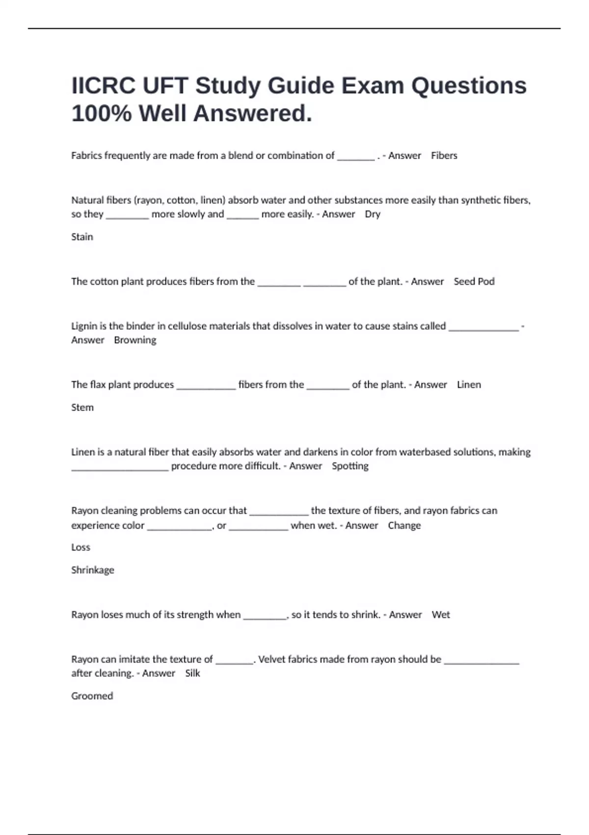 ,Alkaline residues and over wetting could result in _______________ in rayon fibers. - Answer Browning